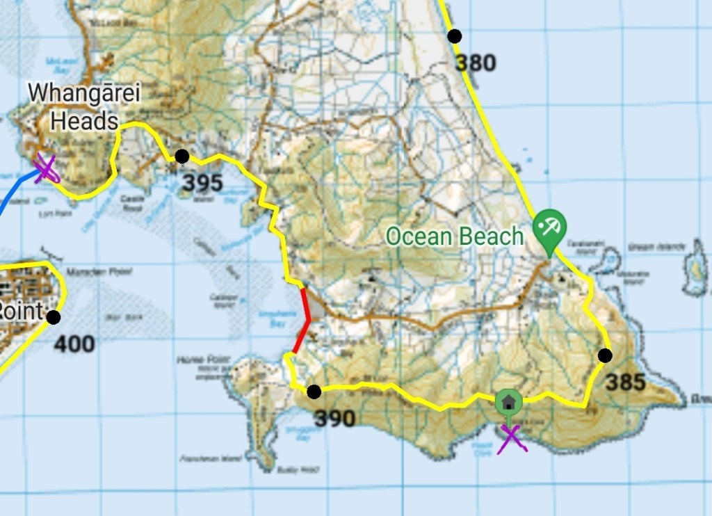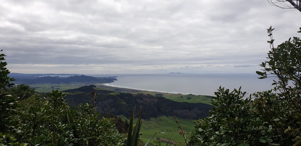 Wasn’t expecting so much up and down for the Reotahi coastal track but eventually made it to Urquhart Bay and the start of the Bream Head Track. There is a man about to start a hike through Smugglers Bay who tells us some useful information about Peach Cove. There are two beaches one is sandy one is rocky. The rocky one has a natural spring nearby where the water is clean and fresh. We then walked a little bit up we sat for a spot of lunch while looking out at the beautiful views.