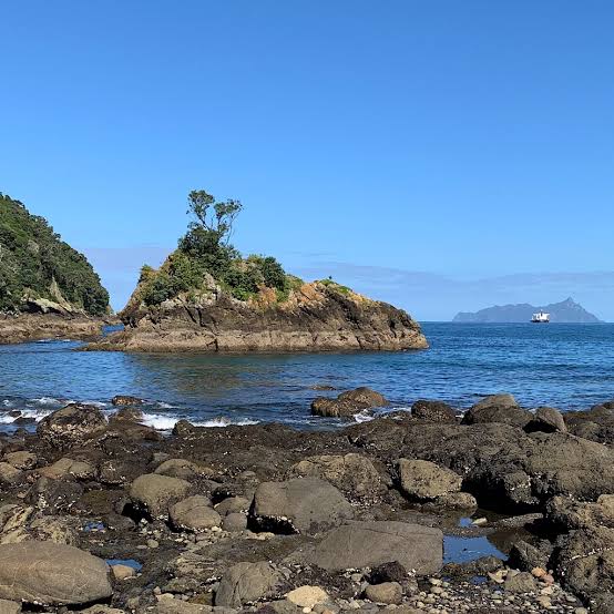 Ended up sleeping okay in the hut, it felt quite big and also quite dirty. The toiled is a composting one which is good. We headed down the track to the rocky beach and it was definitely longer than the other track. We found the spring and filled up our water bottles. On the beach it was really nice lots of nice spots to relax. Rowan and I eyed up few campsites for the tent. We are booked another night in the hut but decide to grab our gear and tent and stay down here. I found some agates in amongst the stones, so we start fossicking the beach. Rowan is waiting for the tides to jump in and do some swimming. Finally in the afternoon he gets in and finds some kina. Unfortunately it was too hard to find any crayfish. About 10 kina filled the bag he had. For dinner we had pasta with the kina in it. It was really nice, not too fishy, nutty and buttery. Our muscles are tired and my blisters need a bit of time so we decide we will spend another day at Peach Cove. We watched the sun set on a beautiful day.