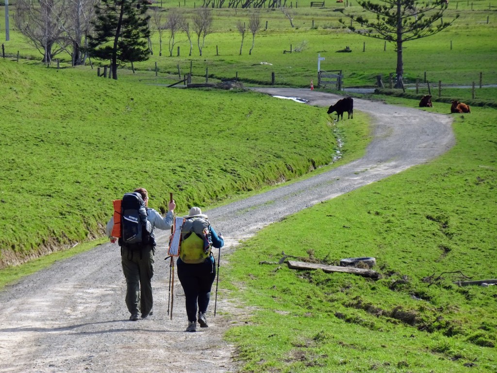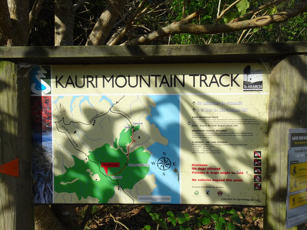 Finally we hit the Kauri Mountain track. It says 50min walk we did it in 40min, but they have also upgraded the track since they made the sign hehe. The track was really good, some cows are in there and they have left a bit of mess. I hope it doesn’t bother the Kauri trees. At the trig was a lovely platform. We stealth camped on it! Lucky for me I have a very clever sidekick and he worked out how to erect the tent on the wooded deck. Sorry we never got a photo of it, by the time I thought about it it was too dark.