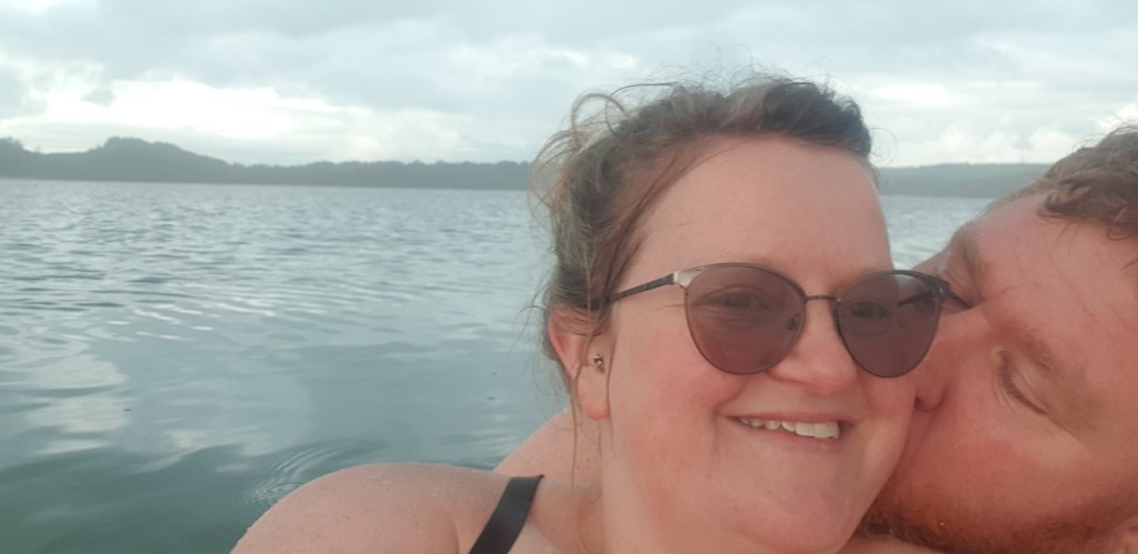 We hit the Op Shops and only pick up some Kiwiana coasters. About to be on our way to Kai Iwi Lakes and Rowan checks his emails, oh we can get an appointment with the bank at 2pm in Whangarei, should we go? Yes, we head in the opposite direction towards Whangarei. We get there early and get a quick few op shops in. At the Cooperative Bank we get a chance to talk term deposits, we also want to talk to Kiwibank before making a decision. From Whangarei we head back west to Dargaville, to go through towards Kai Iwi Lakes. We reach our destination about 5pm and try to make a decision on where to camp. There are two spots you can camp, we choose the cheaper one because it has better sites. It is just as lovely as I remember it, I can’t help but think about all the noise the boats must make in summer. Feeling extremely lucky that it is peaceful and quiet. There is a break in the rain and I quickly put up the tent. There is no shower so into the lake we go, Rowan goes in starkers I wear underwear. An older couple take photos of us and call us crazy. The water is cold, and it takes me ages to get fully in. Once I finally get used to the cold it is quite enjoyable. Out of the water and Rowan gets cooking dinner. We get into bed feeling a bit cold still from our swim.