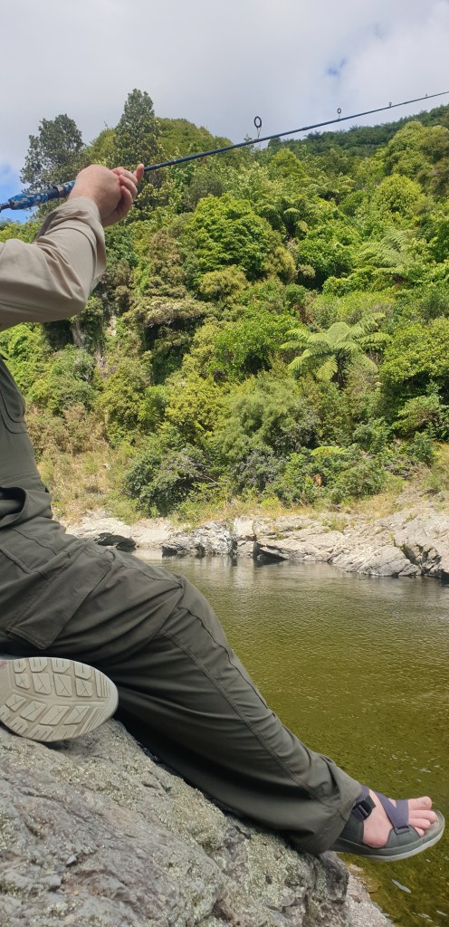 Thursday – I am up early, most of the camp is asleep. Rowan wakes fairly early too and we have a chill morning with some eggs for breakfast. We head down the the river and spend a long time there. Rowan fishes and I read my book. No luck with the trout but not surprising when we have a spin rod not a fly rod. The water is cold but it is really nice and we enjoy a swim. We eventually get hungry and head back to the campground.
