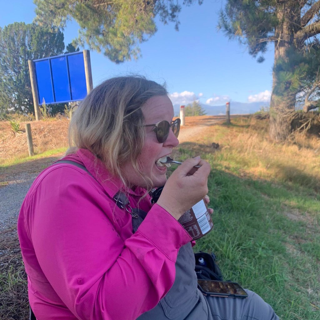 We get some new panniers for Rowan at Rider18 and we end up getting a drybag from Torpedo7 that doubles as a backpack (not a very comfortable one). I don’t have the energy to get the rest of our stuff from Kevin’s tonight so we go to the campground and we will get it in the morning.