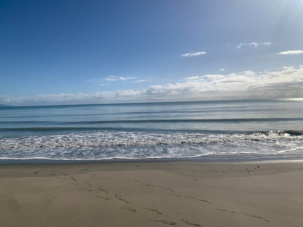 Fueled by Subway, we head off to Tahunanui tip shop looking for a bracket that fits my front torch. This time we take the old train route inland rather than along the water. There is still a bit of a head wind so we don’t win both ways. When we stop i get off funny and end up falling off and rolling down the hill. I pushed myself too hard and my legs were jelly. I didnt get hurt, lots of padding an a soft landing. We get to the Tahunanui beach for a break before heading into Nelson Town to Torpedo7 and Rider18. We will stay in town at the top10 tonight.