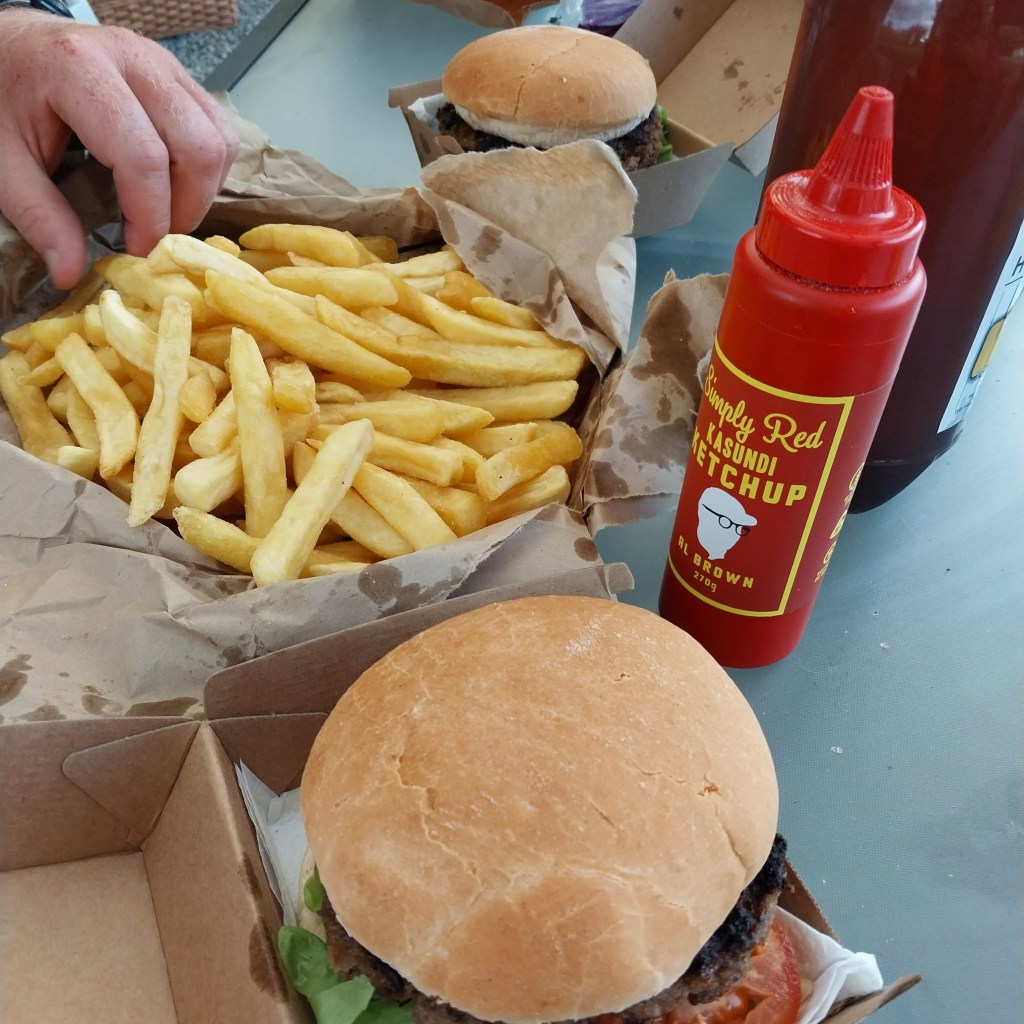 We set up our tent at the campground. Free WiFi, showers, washing, drying. It is a great spot for weary riders. We headed to the 4square to get a few supplies for dinner and ended up going to the pub to get takeaways. Not bad burgers for $7.50