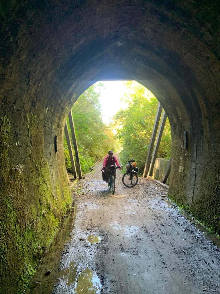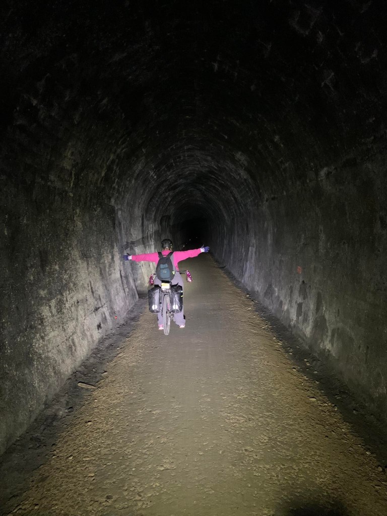 Now my legs are killing me, it takes a long time to get to the tunnel. I walk and bike the rest of the uphill. It doesn’t look uphill but it is a small incline. Obviously designed to trains to handle. When we get to the sign we chat to a guy who we chatted to earlier on his way back and a group of people who are on their way to Wakefield.