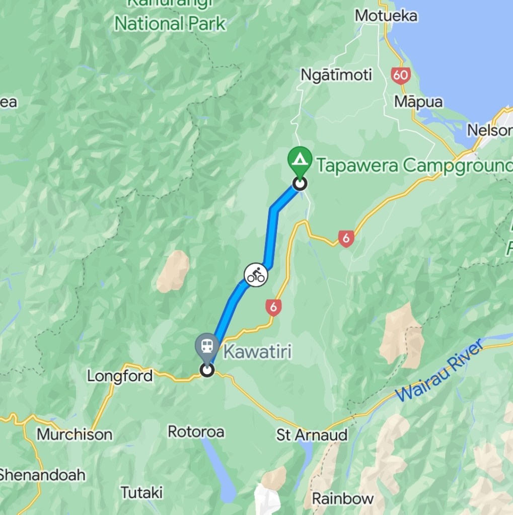 When we got to the downhill it wasnt all down. Which made me mad. On the plus side Rowan had to walk a fair chunk too, so I dont feel teribble. We got there in the end. There is a spot Rowan and I know along the highway that you can camp. So we want to get there. Turns out the spot we are thinking of is past the turn off to Lake Rotoroa so we make it to Kawitiri instead. 45.2km!