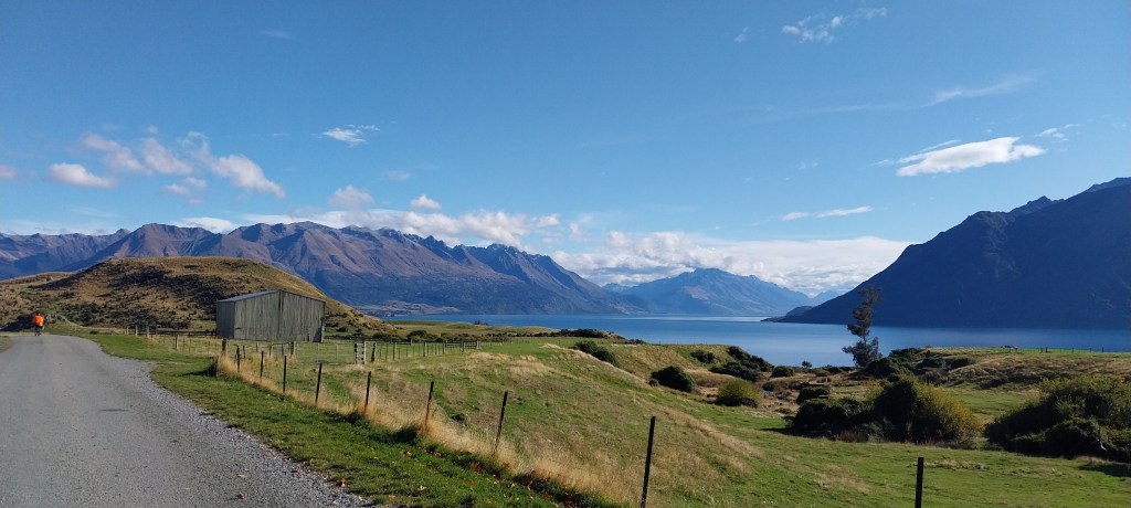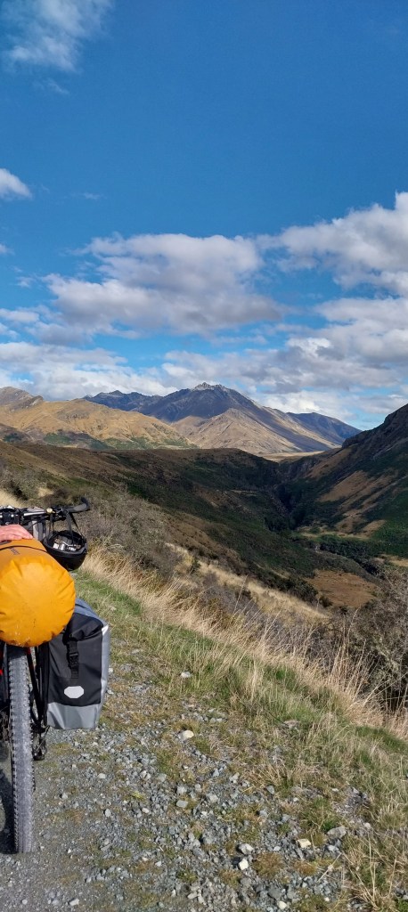 Once we reach Walter Peak we get off and get on our bikes. Today is a challenge. Quite rocky road with bad traction and a fair amount of up!