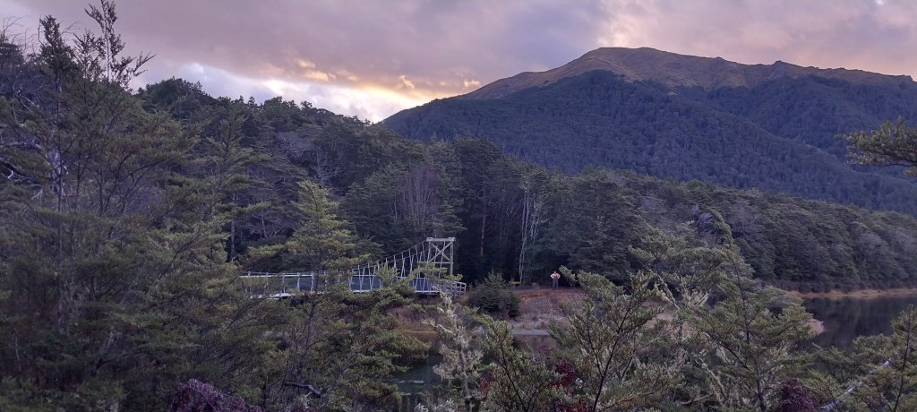 After all that lovely down, we now have a bit of up to contend with. We want to get to the lake so we can swim. It is getting rather late but that is what the torch is for I guess. Wow this place is bullshit. It is so amazing. The water is clear, the bush feels really old. You can see why they filmed LOTR here. It is out of this world. I will take more pictures tomorrow. Right now I am pooped.