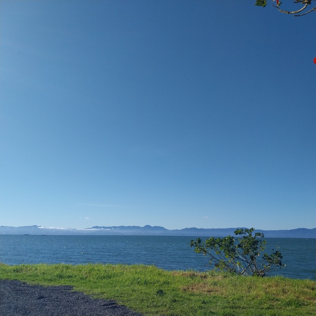 We headed off at a good time and went back the way we came in. Our first hill was right there. It took a couple of breaks to make it up, but we did it all on the bikes. Then it was downhill to Tapapakanga Regional Park, then back uphill. This hill wasn’t bad at all. There was a nice view at the top where we had a snack.