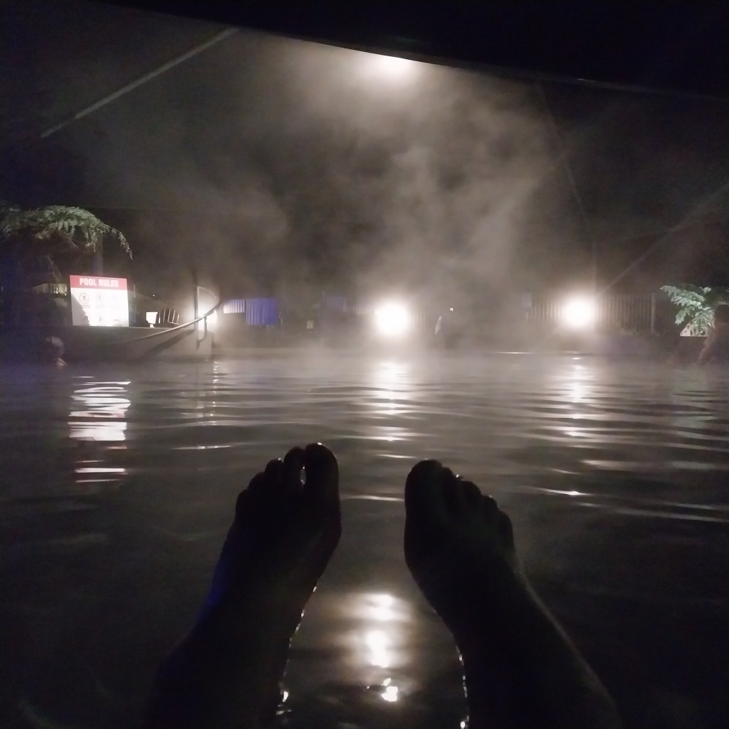 There is a cycle trail next to the road, which was a bit haphazard in parts from recent storms. But we followed it in parts and ended up at the Miranda Springs Holiday Park at 2pm. Nice and early. After set up we got into the pool which is pretty hot. We lasted 40min before needing to get out. After dinner, we hopped into bed to read our books. Then we decided to hop back in the spa