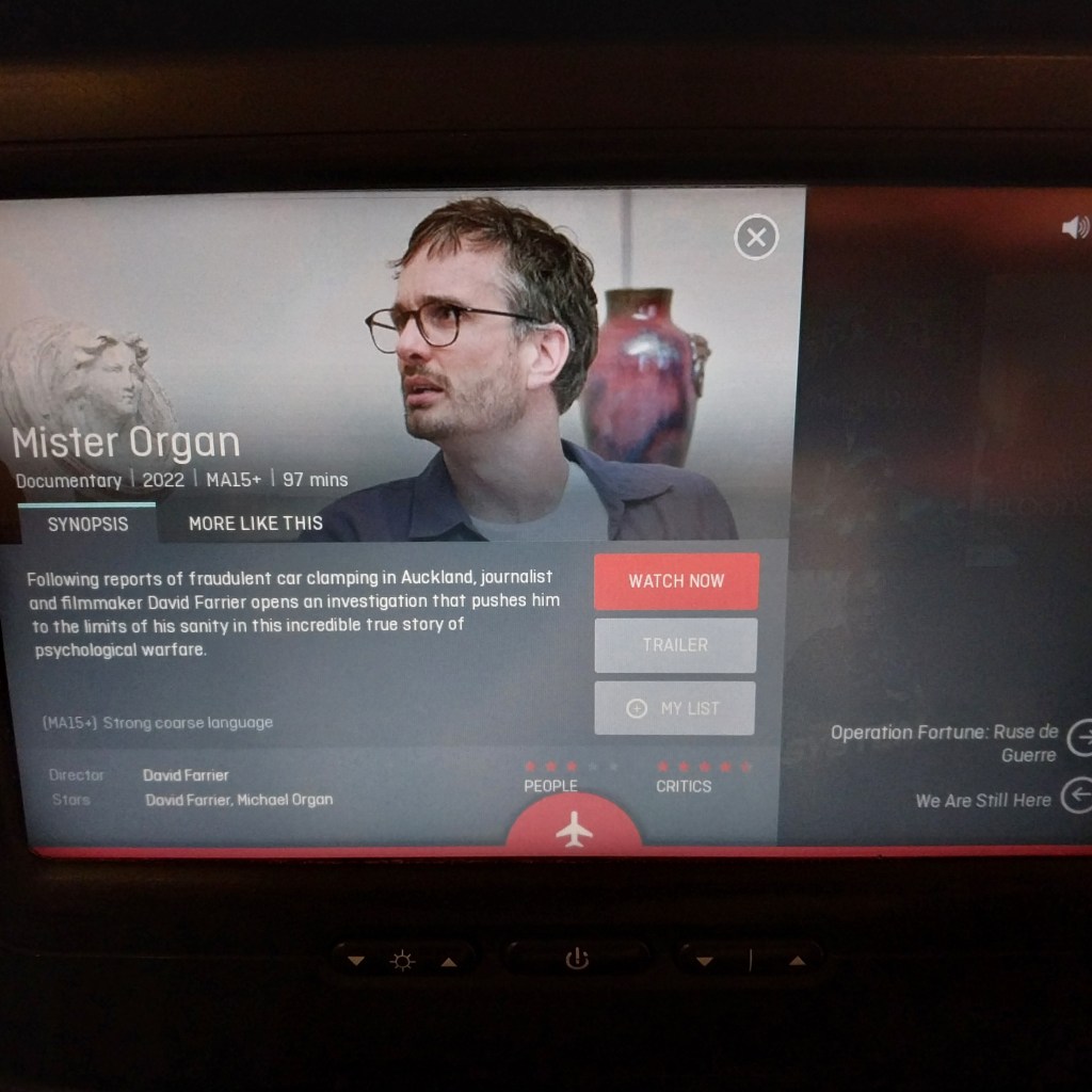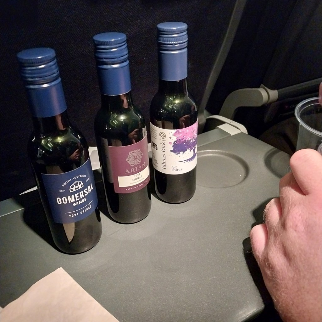 We thank Dad and say our goodbyes. We are nice and early for our flight, we check in and go straight through to security. The area is quite busy, Rowan and I read our books as we move slowly up the line. I get through fine but I get selected for an explosives swipe, of course I pass that one too. We end up going for a good 20min walk while we wait for our gate to be announced. Then we find some food and massage chairs. I am surprised at how good these bulky chairs feel. Finally we get to board, I had picked the back of the plane and a window seat for Rowan. Once we are on I realise we will have no neighbours, we have 3 rows in front of us empty and one row behind us empty. The whole 5 rows on the left are empty too. Wow we get heaps of space, I move over to the aisle seat. Ooo Mr Organ is on the list of movies, we wanted to watch this Farrier doco when we left for Australia last time by the time we came back it was no longer playing. We start our movies at the same time. There is an awesome hostess who gets us 3 red wines and 2 glasses to try out. Donna comes back in a few minutes asks what our favourites were and brings us back two more bottles. It doesn’t stop there, we get heaps of Kit Kats (12), business class snacks. When the meals are about to be served of course we will be the last. Lucky for us Donna gives us our meal first before heading to the front. Thanks, Donna! I have the chicken cous cous and Rowan has the roast beef. Rowan gets offered more meals, by the time we reach Sydney we are very full. I can’t finish my chicken meal but I do have room for a Kit Kat.