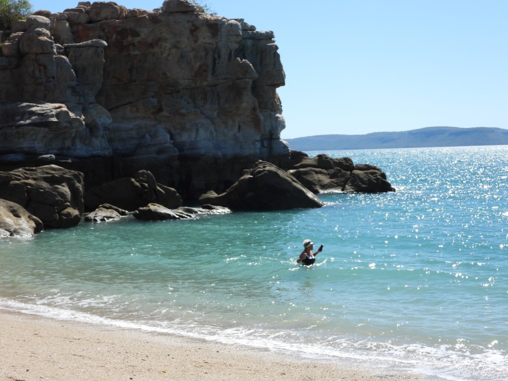 Malcolm Island is a safe enough place to have a swim. Not a long swim as the salt water crocodiles are around. It is not their normal habitat but they do wander. Rowan got the drone out and took some amazing photos and videos. That last minute purchase was a great choice. I am glad I thought about it.