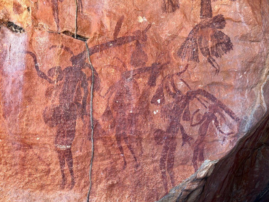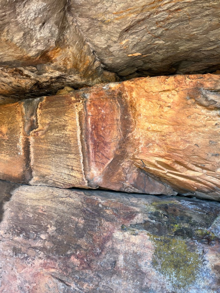 We arrive at our destination and make a beeline to the rock art. It took about an hour to get there, it was incredibly hot. I was thankful to be in the cave and in the shade by the time we got there. There was just no shelter from the heat.