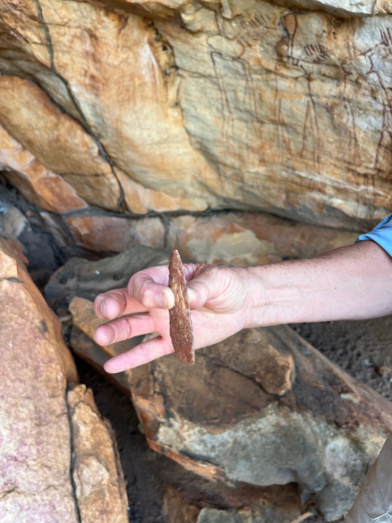 On the way into the cave we got mobbed by green ants, which bite. I swear everything bites in Australia. In the cave we’re some interesting images. Tubs found the spearhead which can’t be from the people around here because they never knapped their spears they just grinded them.