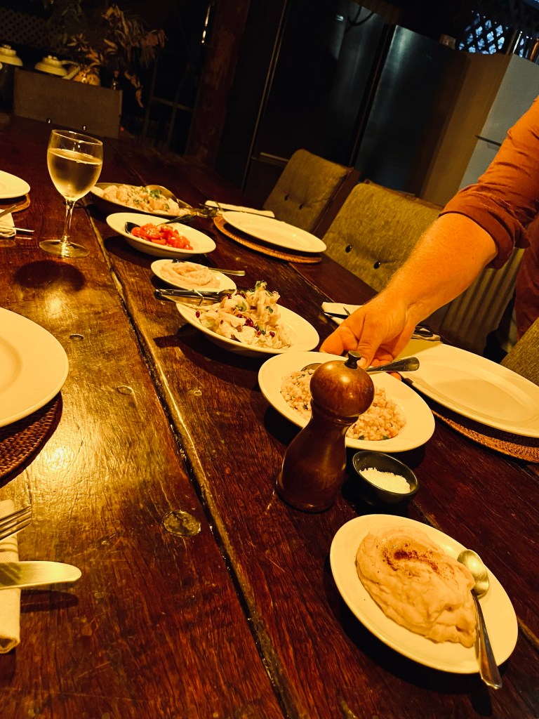 We had a lovely Moroccan style dinner with the fresh fingermark fish they caught earlier.