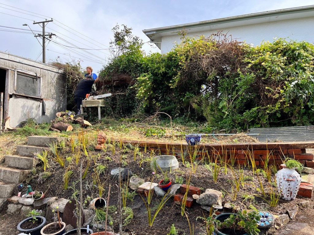Monday; Today I woke up super early 3.30am and couldn’t sleep. Rowan also woke up early 5.30am so we were at till by 7am. We picked up some more plants from lovely Lyn and I got another carex from another lady on Facebook. So I spent the morning planting more of the same area. We had a Dave and a Harry come over. Dave looked at the building stuff and Harry got his chainsaw out and chopped up the macrocarpa more. Rowan is a little annoyed as he broke a window and Rowan said to be careful. Argh another job on the list. We also have wee Presley here helping out. Cory gets the trailer loaded with rubbish to take to the tip. It is mostly the stuff inside the small tool shed and other crap from the garden. We get some more stumps removed today and finally get the one next to the house gone. Rowan works on replacing a window in the main bedroom. We also take the time to see the building team at the council about Palmerston. The PIM (pre building consent), came back and we just had one question. All looks pretty good. Yay, first step done, now to finalise plans then apply for consent. I also noted water in our garage that hasn’t disappeared all week, if anything has gotten worse. I thought it must have rained while we are away. Alas the water Toby needs fixing. Rowan let the council know, which they will fix in the next few days.