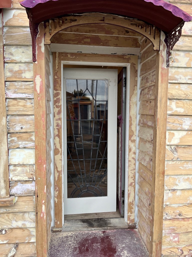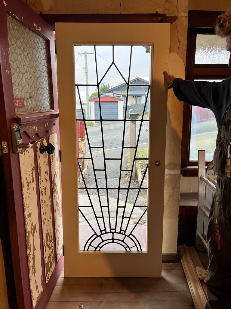Sunday; A hop, skip and a jump to Dunedin. A copper cistern came up on trademe for $100. Well worth it and some gorgeous lead light doors, six in fact. More than we need, but these never come up for sale. You see small amounts in doors but not a full door like these. While we are here we go to the op shops. Obviously not all of them but three are open today. We get lunch on our way out of town. Leaving at a reasonable hour and easily go to the two dump shops on the way back. We pick up a nice mid century chair for $2. Probably shouldn’t have got it as it is not something we need, but for the price who can complain. I will drop it off to an op shop if it is not useful.
