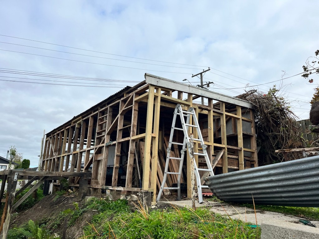 Thursday; A really full on day. Cory finished framing the garage, yay! I worked on the exterior prep work. Rowan helped me remove a few of the windows so I can fix them up. We didn’t notice damage on the inside of the frame and all the hinges had horrible screws. Which is annoying as the hinges themselves are brass and in good condition but the screws have failed. Rowan got onto some framing work. The jobs don’t seem to end. The light at the end of the tunnel cannot be seen. Rowan did a major overhaul inside, there was so much mess and stuff dumped in various spots. He did well putting it all back. Leona calls me to ask if I can help a client of hers with a laundry tub. Turns out the two we have are not quite right. Which is very unfortunate as she has been hunting for 18 months. I will keep an eye out for her while we are out at various tip shops. Talking of tip shops, the lovely Danny (works at Oamaru dump) eyed up a hay feeder, we want one and he wanted the other. So we made a deal, delivery for dinner. Tonight we pick them up and we take one to Danny’s place. He has a container home, fully off grid in Deborah, not far out of Oamaru. A late night, asleep by 11.30pm.