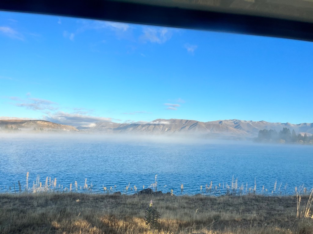 Sunday; Up for our morning walk as usual. We had a cuppa and got driving. We ended up watching the sunrise as we came through Omarama. We are heading past the turn off to Lake Oahu and going to get Salmon and dinner supplies. We go to the supermarket first in Twizel, then we go to both salmon shops. On the way Rowan notices a deer on the side of the road. We turn around to take a look. It has obviously been hit, must has been a truck as any normal car would be in a ditch. It is pretty fresh, so it can’t have happened long ago. Rowan took photos pretending he shot it with an air gun and sent it to his hunting friends to stir the pot. We ended up taking the antlers by sawing them off. When we arrived at Ohau we found a spot on the lakeside to camp up. We both ended up for a cold swim in the lake and then had a good hot shower to warm up. The lake was freezing, it took me ages to get in and I didn’t stay long. The wind picked up and it got quite nasty in the late afternoon and evening. I am glad we got in when we did. We both really enjoyed being away.