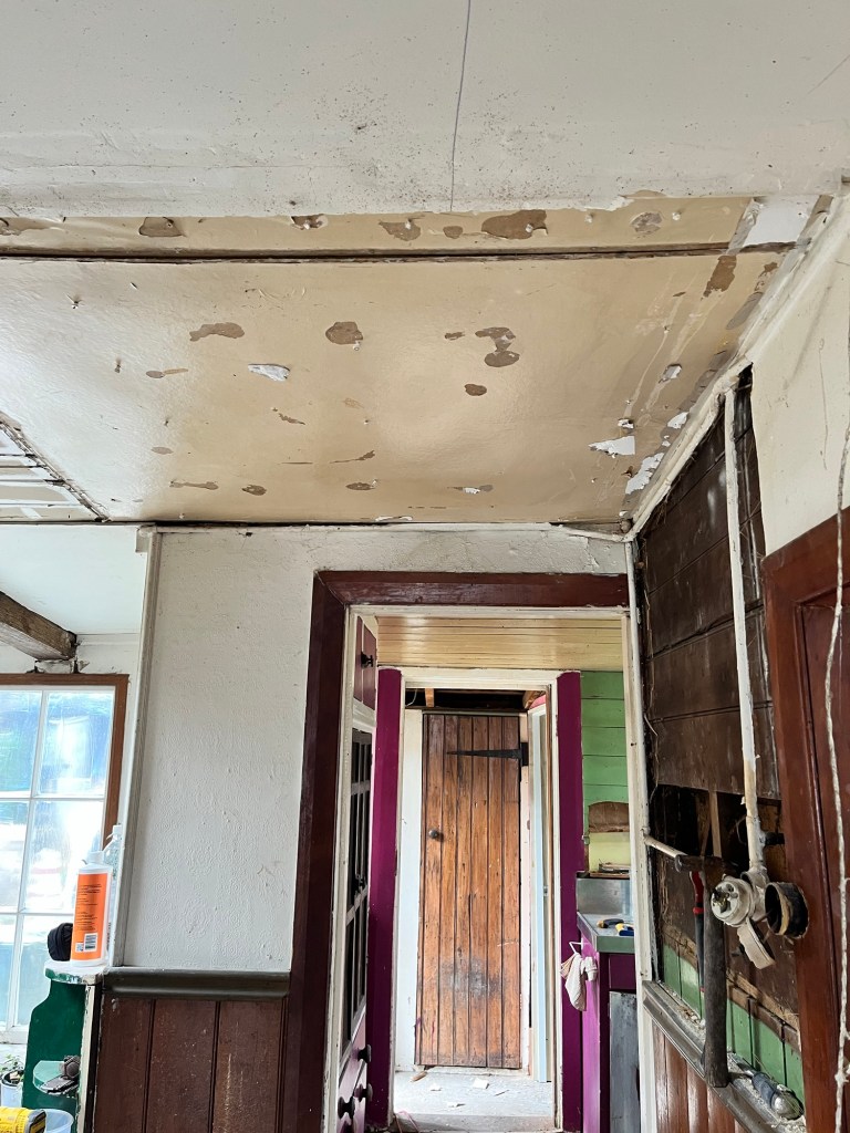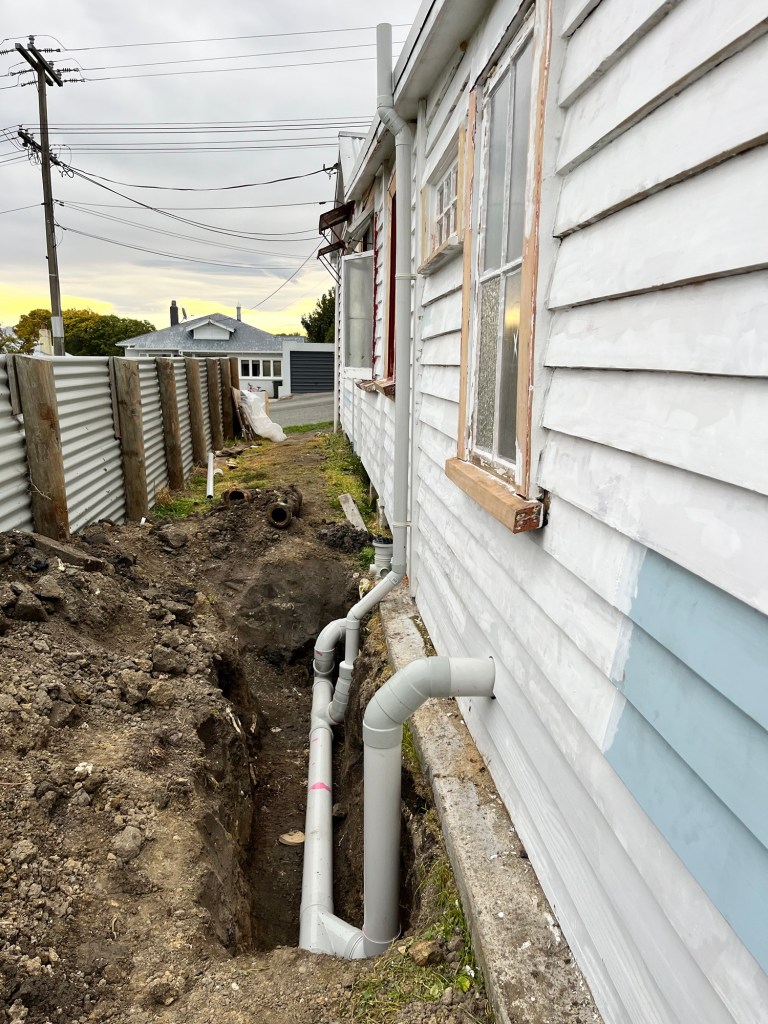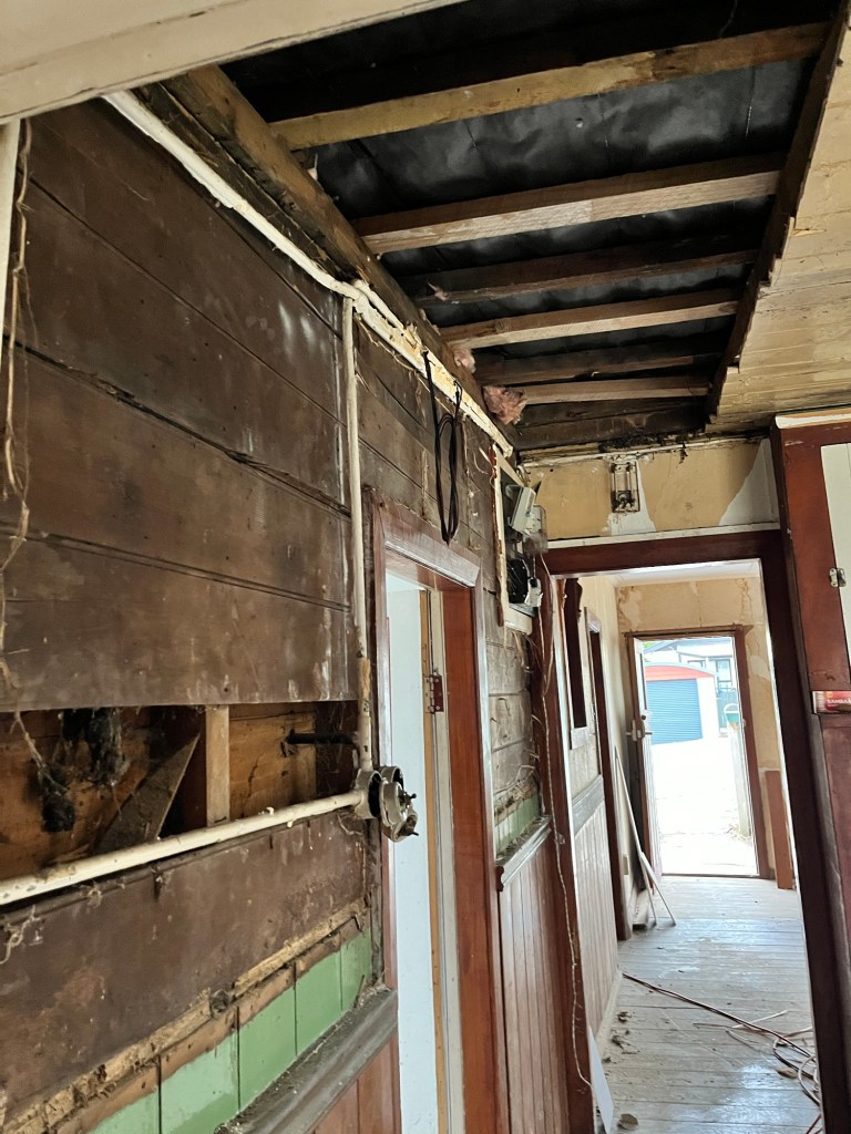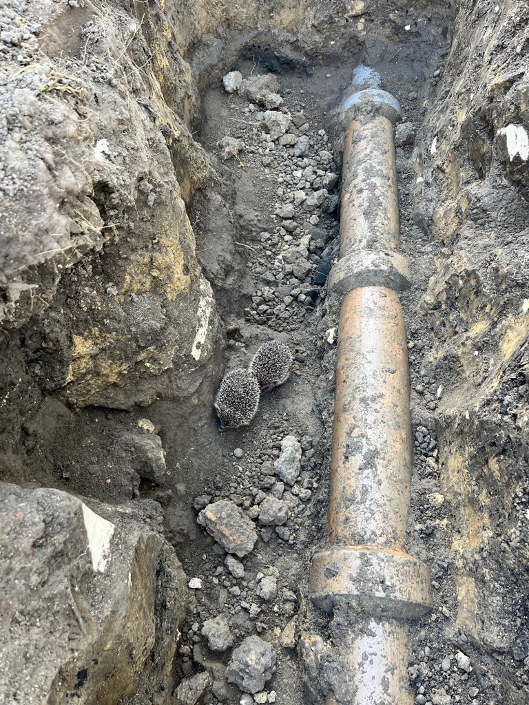 Tuesday; We have some paperwork to get underway. A quick stop at Till St so we know what plumbing we have and can look up the data sheets. Thanks to the lovely Leona we can come in and out of her office as much as we please. We get all our consent in order and I see Dave has messaged to tell us he will be at the house today. Perfect, we will get him to check what we have done before sending it off. Dave checks it through. We wait for Cory and Laura to arrive and get their tasks underway. Laura is painting up high and Cory is pulling down linings so the electrician can access it. They are multiplying! Two hedgehogs in my hole now. Well we will save these two and hopefully have no more. I later find out they are looking for water, if I put a bowl out they won’t go down the hole.