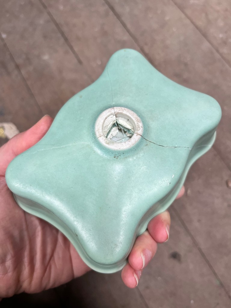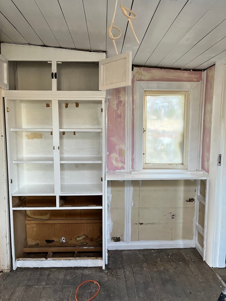 Wednesday; Rowan planned on following me in later morning but ended up next door helping Jim cutting down trees and getting it all sorted. They had a big digger there moving a large area of dirt and getting down willow trees. Meanwhile I attempted to kintsugi the broken soap dish for our pedestal basin. Cory removed the stumps out the front and does a site clean. Then up on the roof of the garage with some flextape filling in any holes. I get a second pigmented sealer on the kitchen (I will need more). I start the dirty job of the built in kitchen cupboards and discover more rats nests. My mask has gotten a work out today!