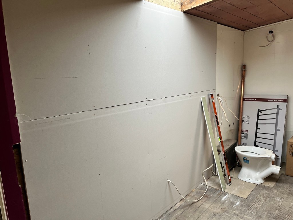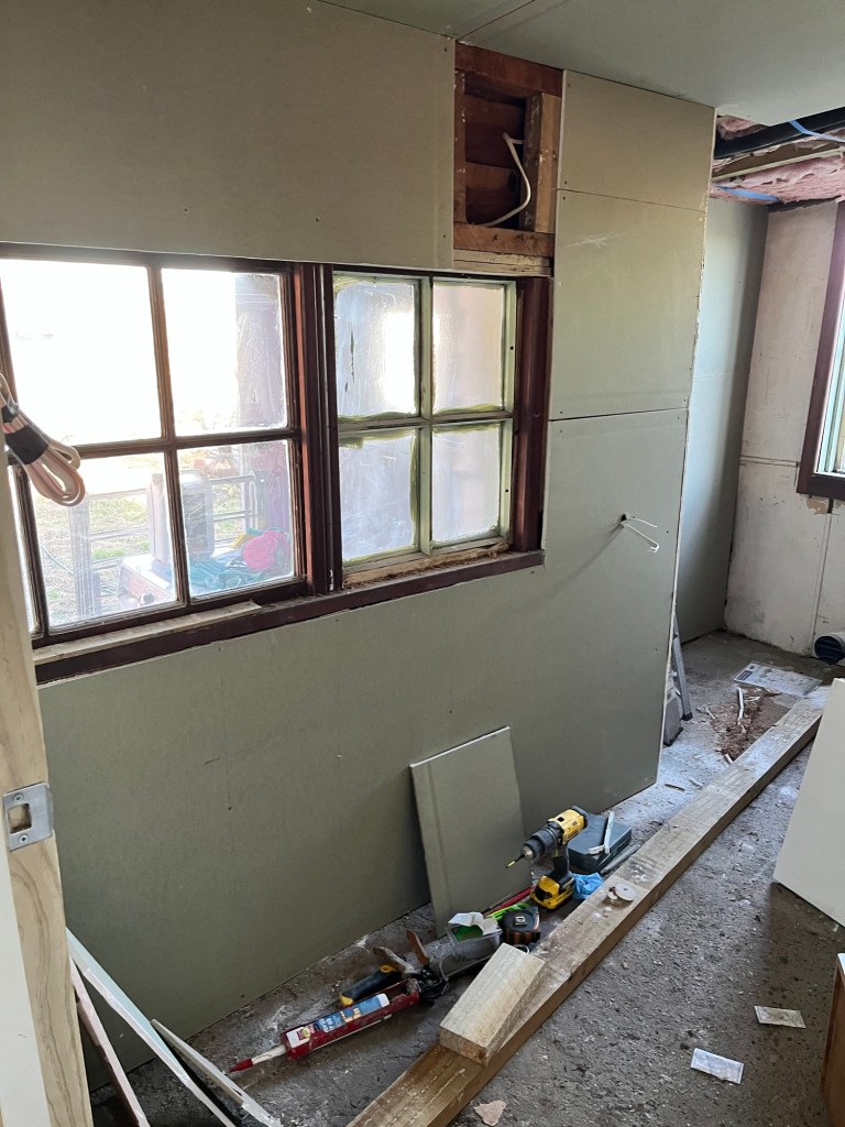 Friday; I headed off early. Well dear me, my ute is making an awful noise. I pull over asap and call AA. It smells too, not a good sign. While I wait for AA I pay some bills. The guy is really nice. He gets some more oil with me from Herbert as it is very low. We limp it back to Herbert to take it to the local garage. I really didn’t want to turn it on again incase I stuffed it. The oil was low but we have accidentally let the oil light come on before so I am not sure if it is that. Hopefully it is an easy fix. Rowan and I ended up riding in together. Looks like I have no choice but to use my motorbike as transport. I have been feeling anxious about frosty mornings and wet roads. Oh well, will need my big girl panties. At Till Street, we finally get there at 10am. More GIB on the agenda today, but most importantly we got our first coat of stopping on the kitchen. Yay two more to go! I was useless today. I mean I got a lot of paperwork jobs done but I struggled to work on the house. The cold was uninspiring. I did get some small things done, paint, filler, mortar. I certainly didn’t get as much done as I would have liked. Oh well, there is always tomorrow.