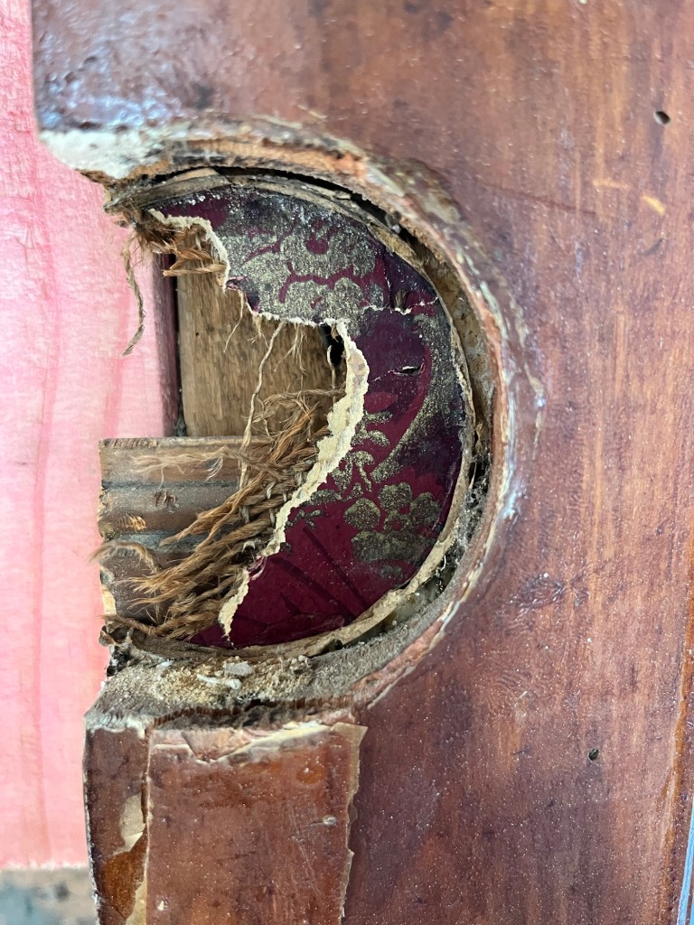 Thursday; I started Cory in the garden, but he was a bit slow. Rowan told him to stop and move inside. I was a bit oblivious because I was too busy sanding the kitchen doors and drawers. I think I may need to learn embroidery so I can cleverly fix the holes in the old metal mesh. Mmm I will consult Pinterest. I got the paint out of course. It was sunny enough that I dared to paint the back door. It dried, phew. I just want to get moving so I have one room complete. Well ideally kitchen and bathroom.