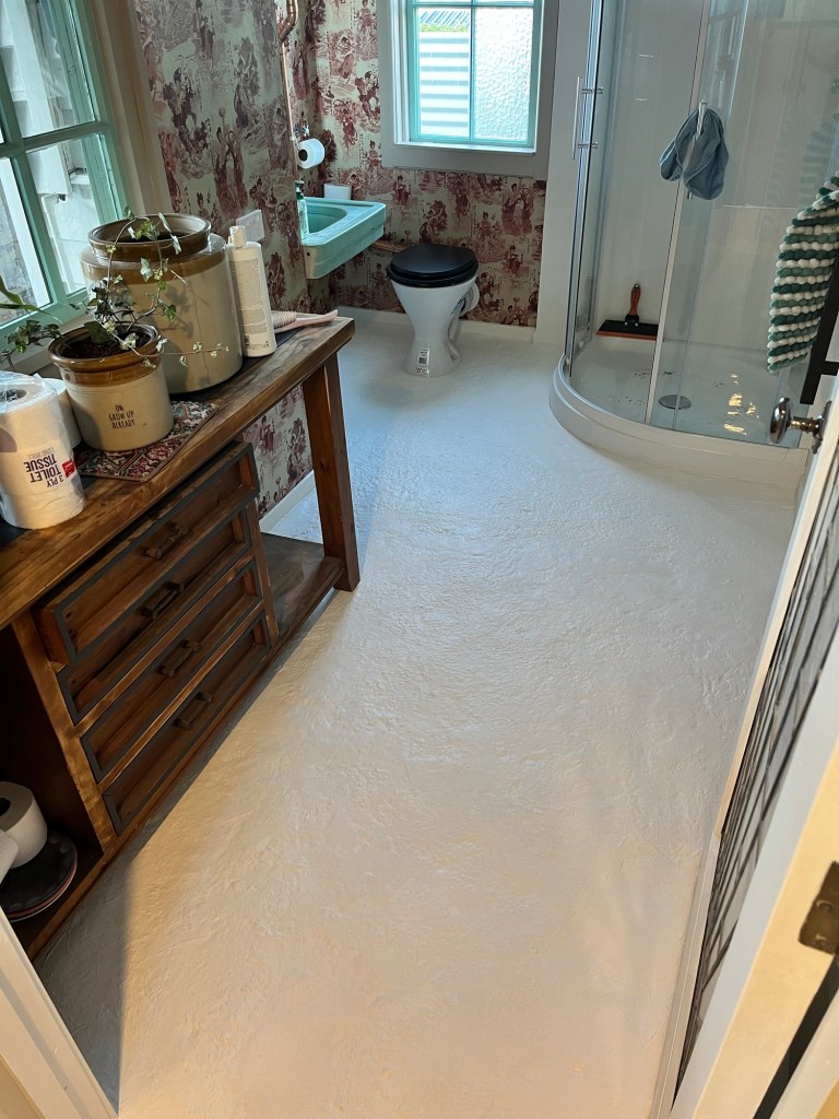 I painted the bathroom floor another coat just before we left for the night. Glenn did come and did 2 out of three jobs. I had to call Fred and ask him for a huge favour. He is coming back Friday to install the rangehood. Glenn left his hole saw kit as ours don’t go that big!