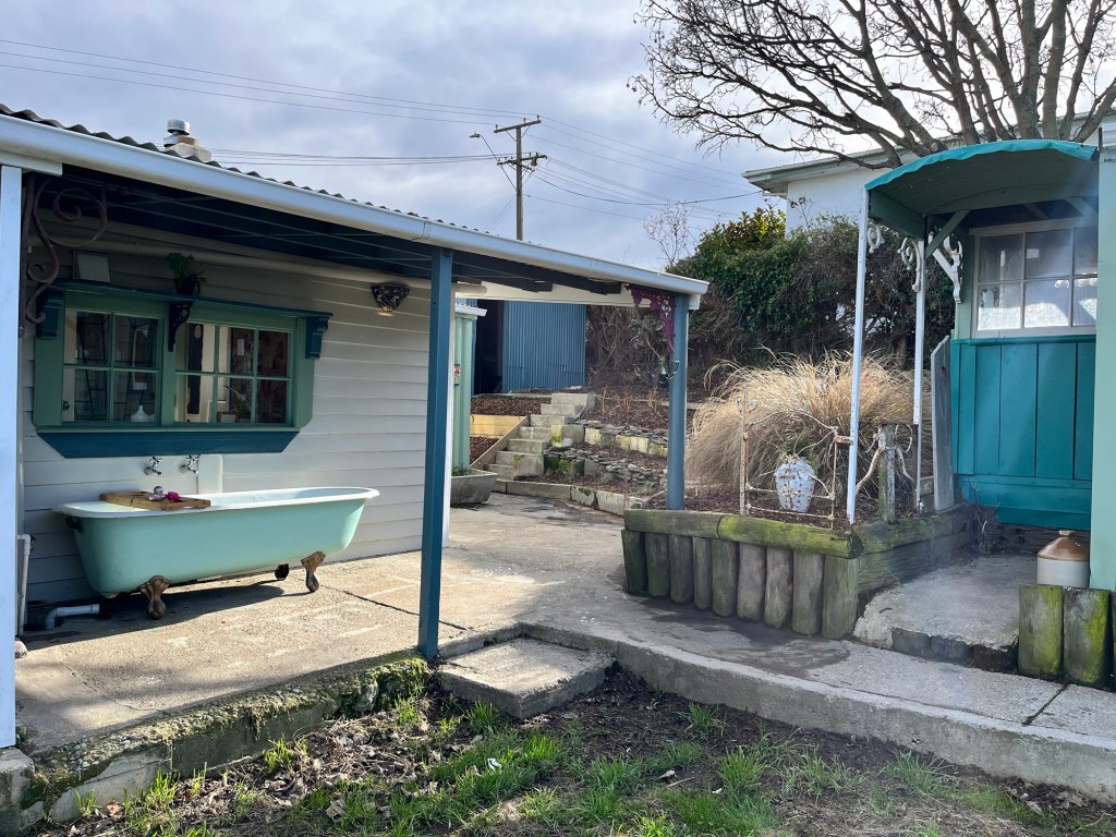 Friday; An early start. Rowan and I head to Christchurch to pick up an engine for Noodly and a dishwasher for the house. While we were at Trade Depot picking up the dishwasher we ended up buying a cracked bath for $10. My plan is to take the drain out and add more holes and use it as a fancy white plant pot or as a raised garden. Either way it saved it from the landfill. The engine gets put on by a forklift and I wonder how we will get it off. That’s a tomorrow problem. We take our time coming back and op shop our way down to break up the drive. We take the dishwasher to Till St and sit it there. We can install it later. I painted the front doorstep. It will be ready for people to walk on for the open home.