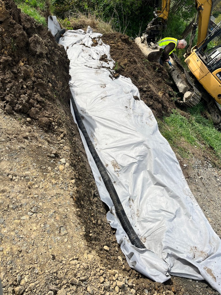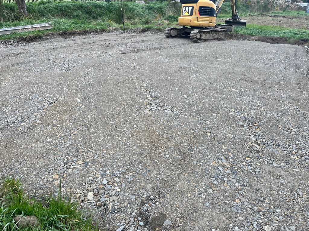 It’s Tuesday, we are heading down to get these sites done. We organised a compactor again with Skevingtons and unfortunately it fell through, so we wasted half of the day not being able to compact but we did the best we could. Hireworks brought a compactor out to us but it didn’t arrive till 1pm. Chris carried load after load of the gravel with his truck. Because of the lack of compactor we can’t finish today. However Chris has finished his part, we just need to compact the ground sufficiently.