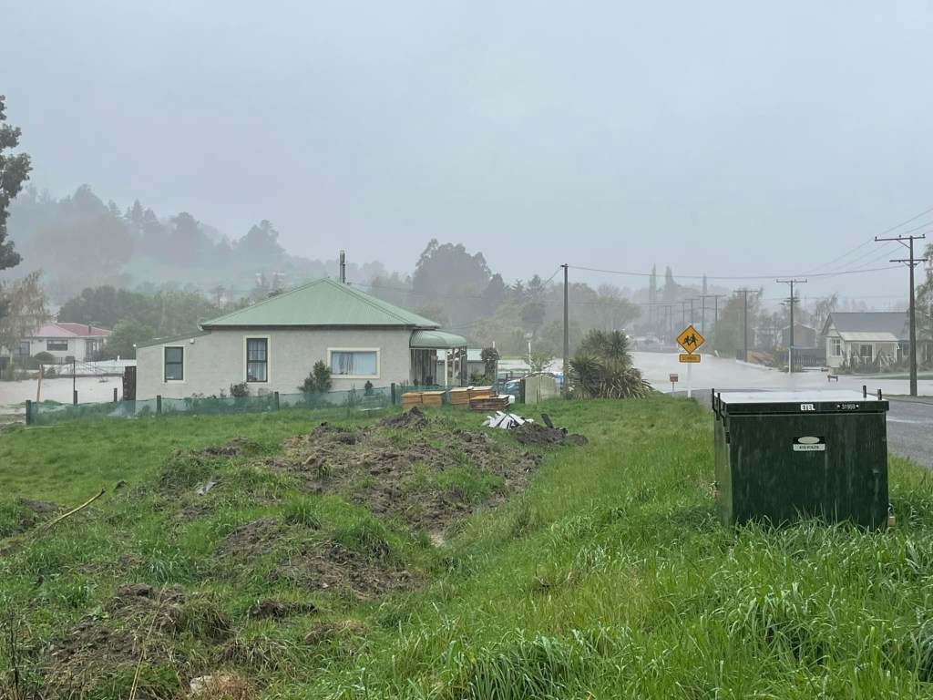 Thursday and Friday the rain came, it wasn’t so bad in Herbert and Ōamaru but Dunedin and Palmerston was hit heavily. Our sites flooded mostly due to a blockage in the drain. The water was backwater though which is not ideal but we didn’t have flowing water over our pads. We decided not to go down and look. I am glad we didn’t because not long after they closed the road. We got all these photos from neighbours and Facebook! Not much we can do from here just wait. Someone said that a blockage must have cleared because all of a sudden the water drained like taking the plug out of a bath. Luckily our neighbour didn’t get water into her place but some of the new builds further down got inundated.