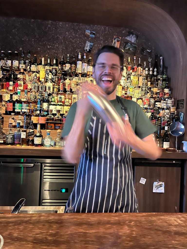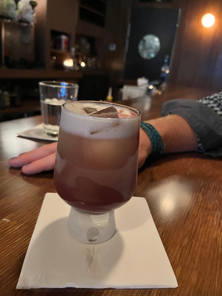 Rowan’s childhood friend Tynan has opened his bar, three years in the making. It is doing extremely well and it was plenty of awards already. So if you’re into Whiskey, (he has a large range including vintage collectables) or just love a bloody good cocktail go to Silvers Motel in Enmore. It is a bit of a hidden gem with no signage out the front. We tried four cocktails, once had cacao nibs, another had burnt mandarin, two were sours that had unusual items like marigold flowers and poached quince.