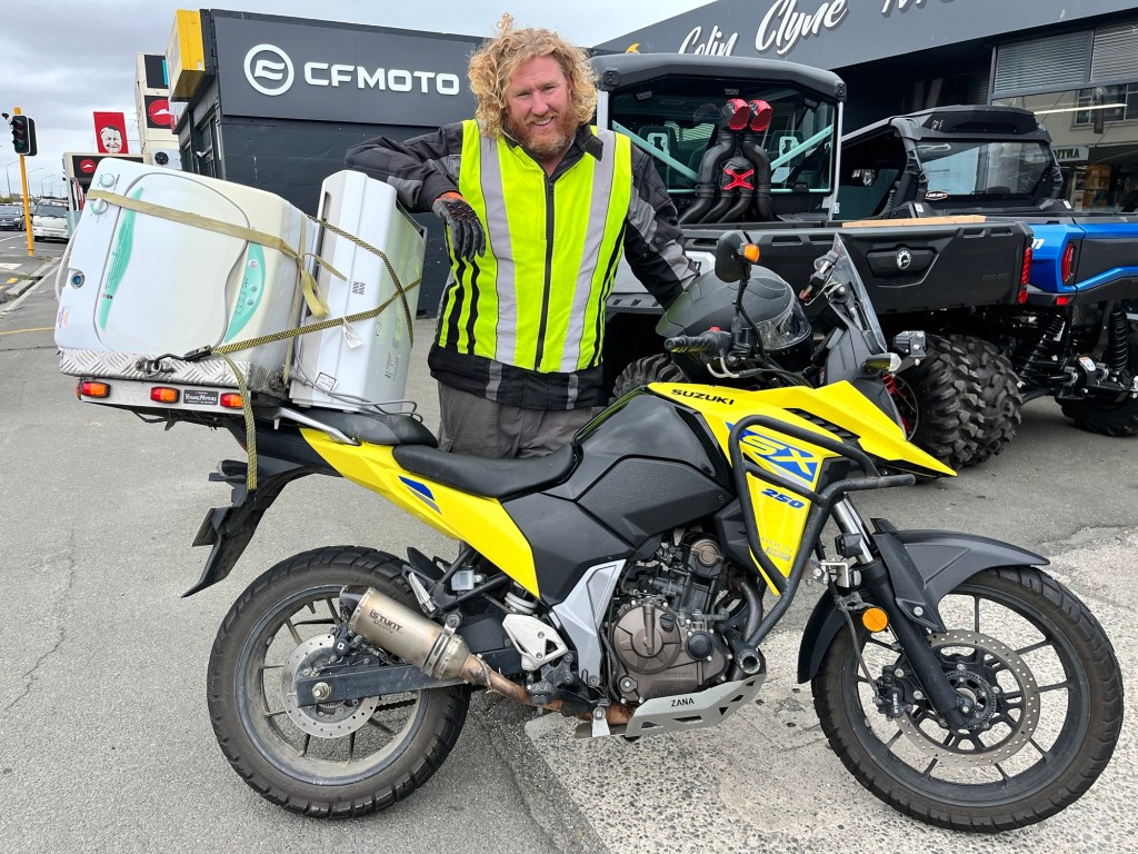 December, the last month. First of all our Christmas/NY plan left when we sold the yacht. We had a plan to head to the sounds. Jim got Rowan to drive the tractor to Herbert. Rowan then used it to mow our field and then Jim’s. Jimmy and I followed on our bikes. Rowan swapped one of his bikes for this near new Royal Enfield Himalaya, which is actually for me to try out. I have only been out of twice but have enjoyed it. Just an adjustment, it is quite different to my little TU. We had an easy breezy Christmas at Silvija and Jim’s. Ate way too much!