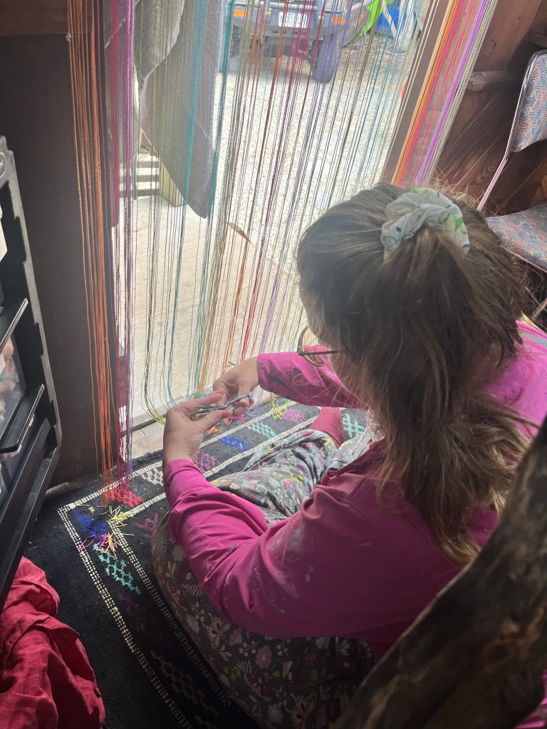 Jim has now paid us for our tree planting services with two huge loads of firewood. Which took some time to stack and put away. We now are well stocked with wood. I knew my hairdressing skills wouldn’t go to waste. Here I am trimming our rainbow flyscreen that was too long.