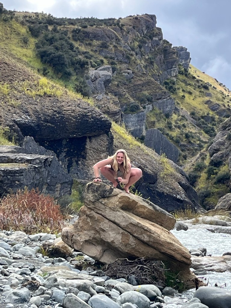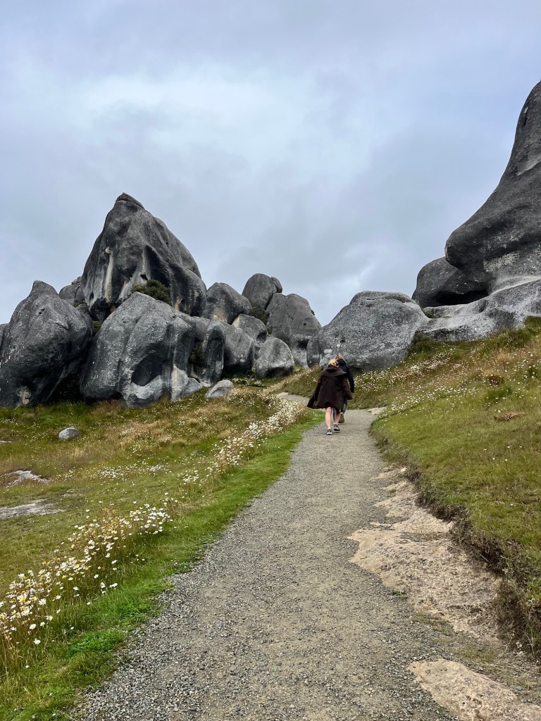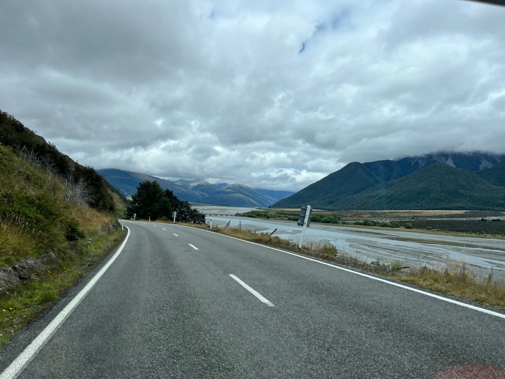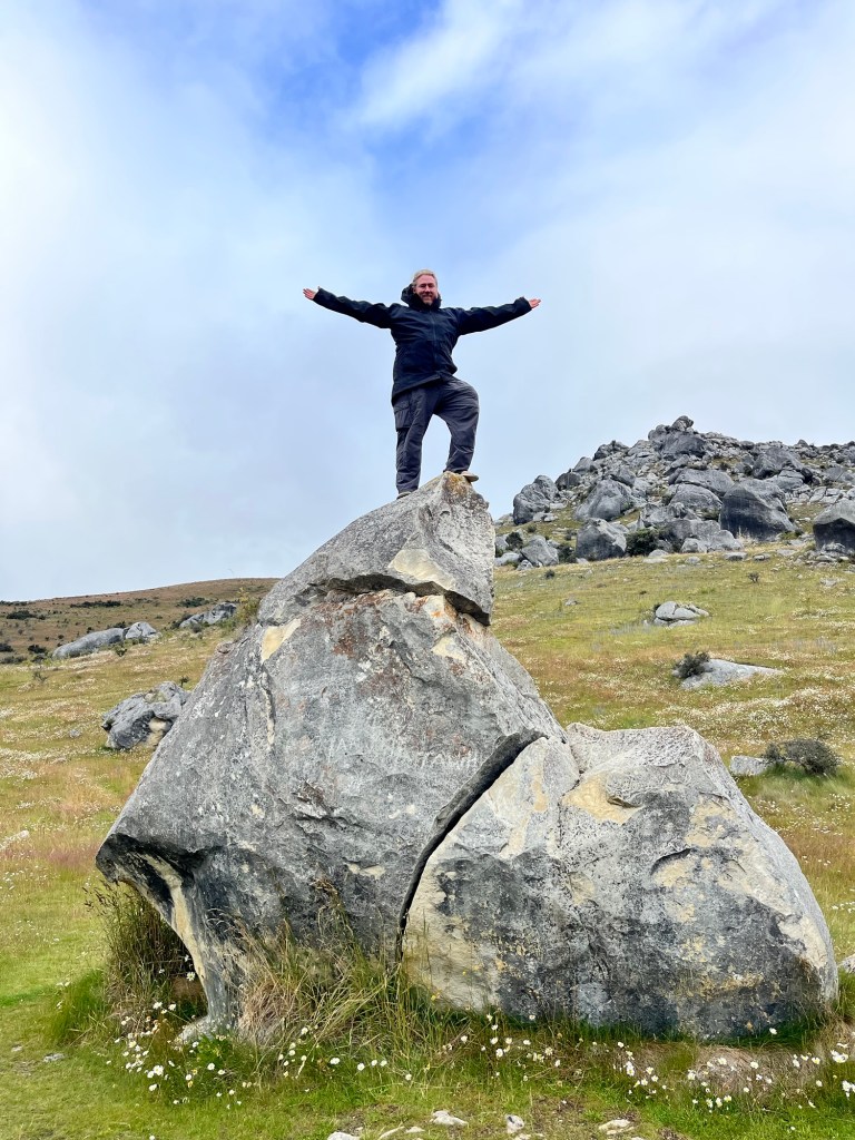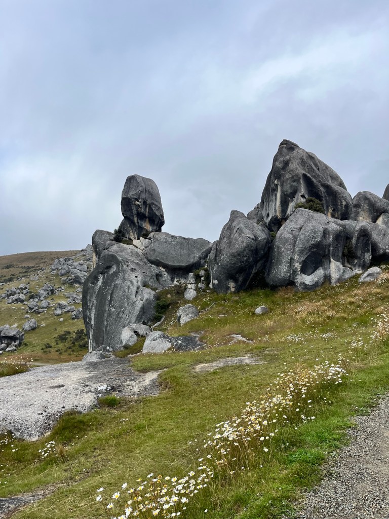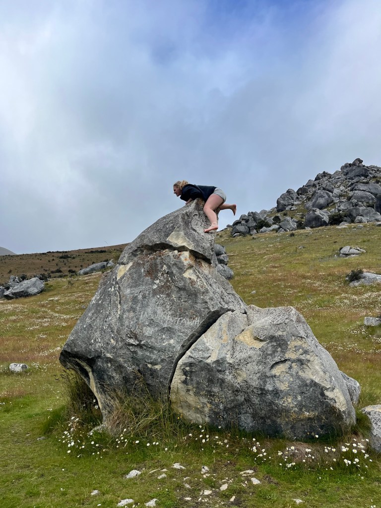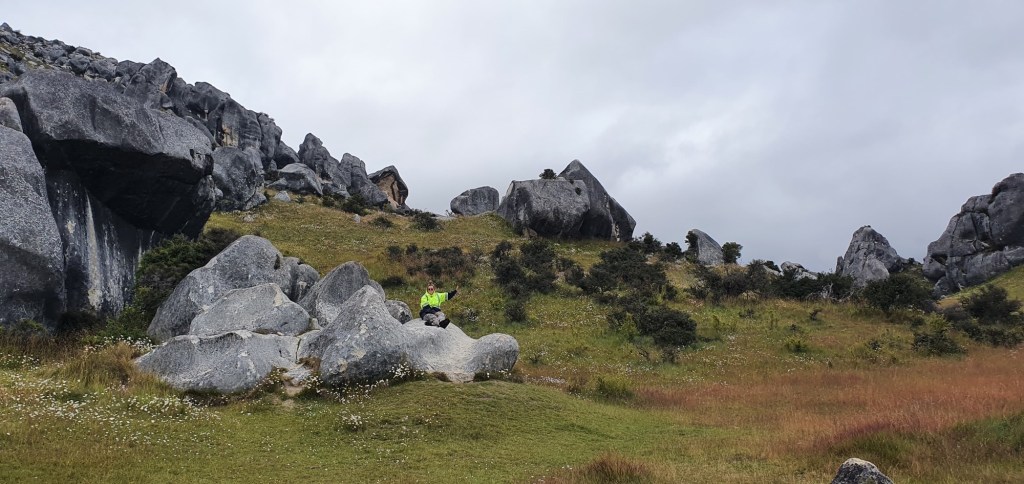 We are up nice and early, it is super cold and some psycho decides to go swimming. So off Rowan and Germie go back into Lake Lyndon. I am sensible and drink coffee instead. Our first stop is Castle Hill, the weather is pants but a DOC worker tells us it is nice towards the West Coast.