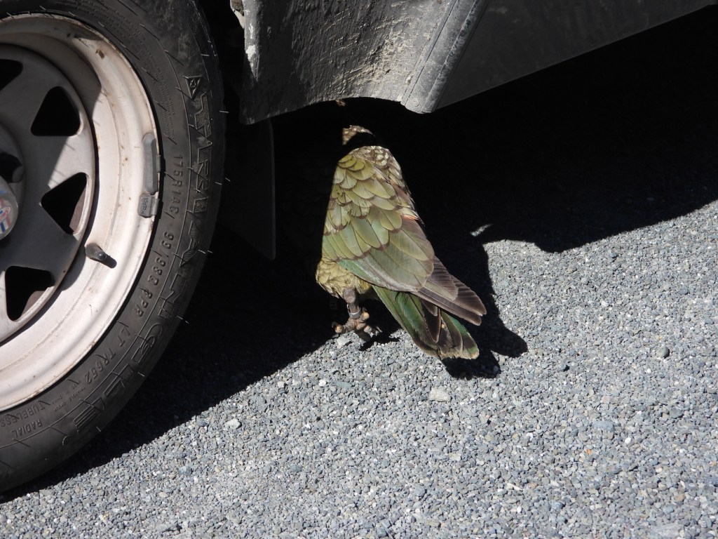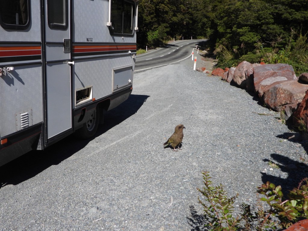 A great breakfast not far down the road. A local tried to join us but we were adamant that this cheeky kea did not need any food.