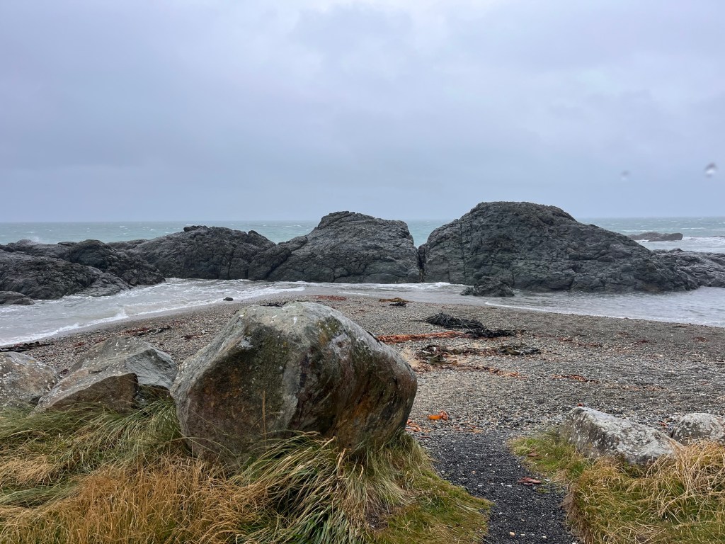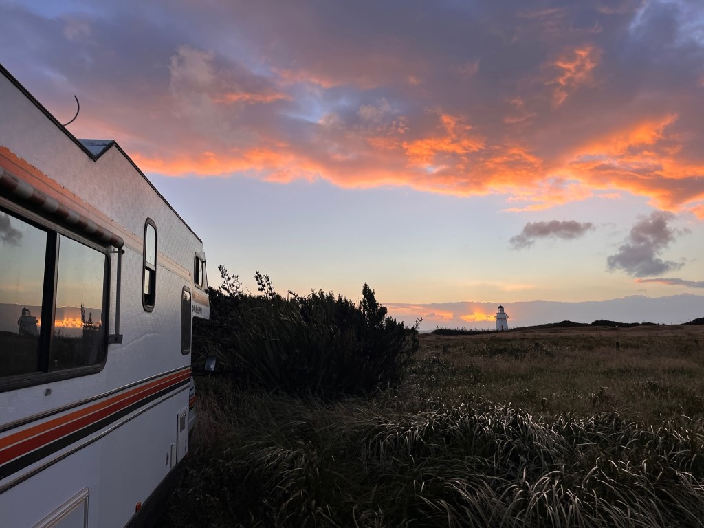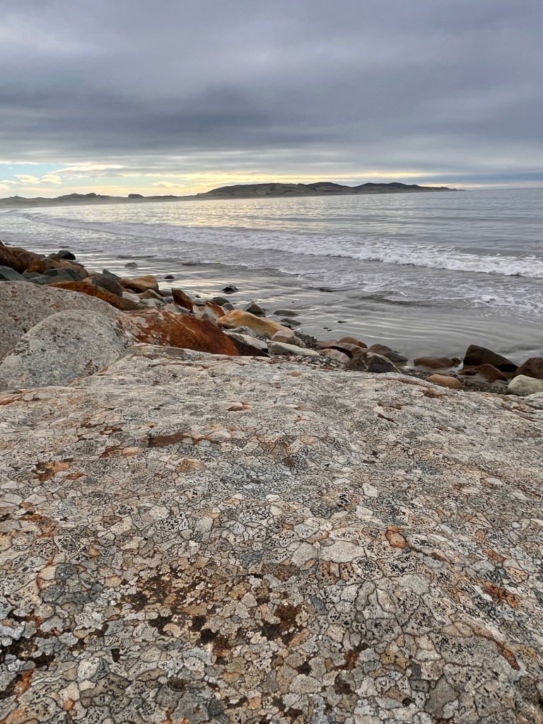 We stop out at Waipapa Point Lighthouse and fossick the beach before dinner. We come across a large sea lion who we navigate around and give some space. The wind makes it uninviting to get into the water, but Rowan hops in and ends up swimming with a seal.
