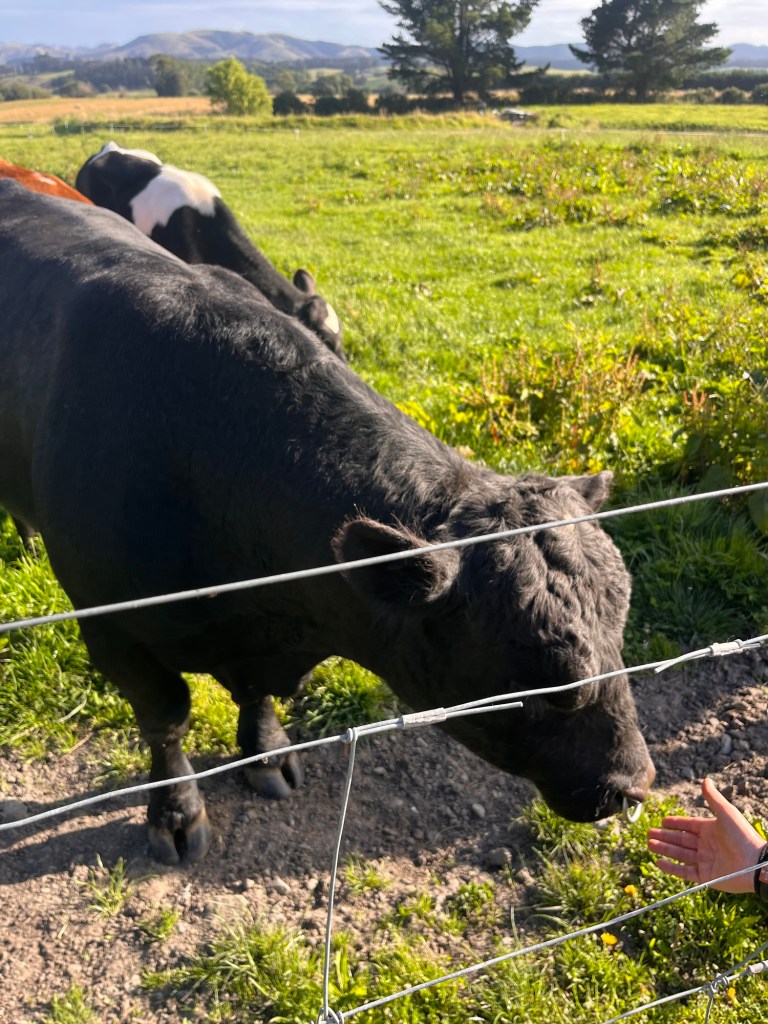 Out of Dunedin fairly early. We stop at Otago Milk to pat the cows. We also feed the lambs some milk and say hi to the horse.