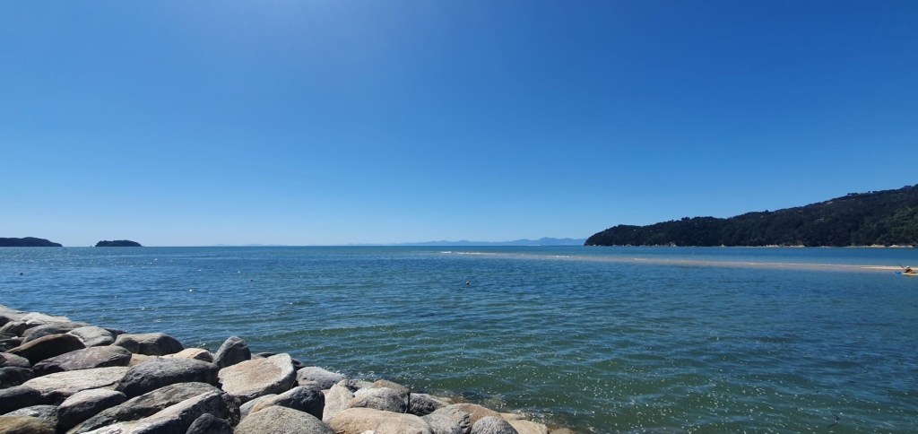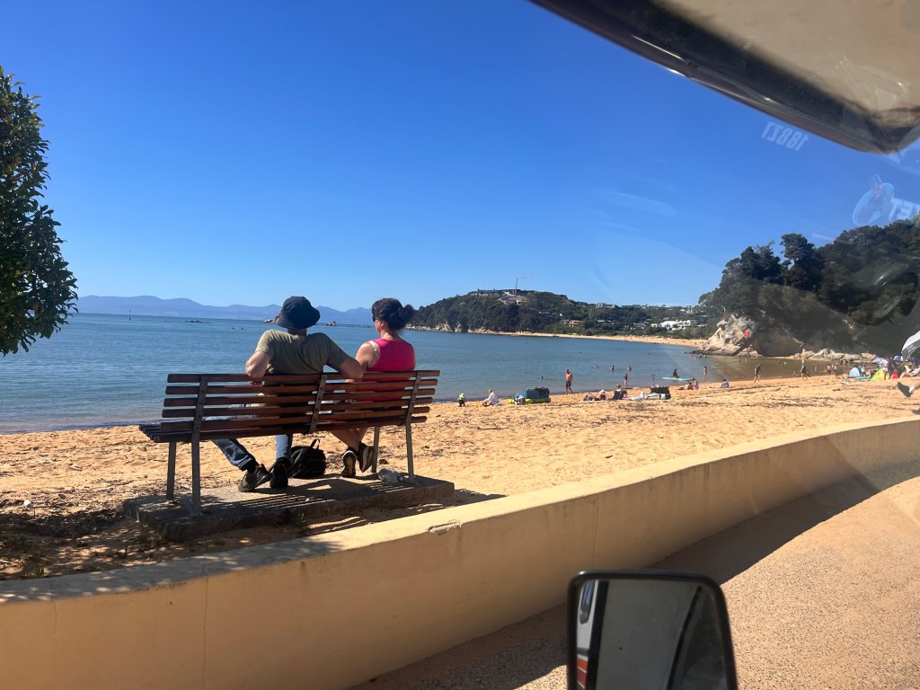 Off to Kaiteriteri for our next swim. Today is Waitangi Day and I expected it to be busy. But not this busy. Rowan’s face as we are driving says it all. We couldn’t find a carpark and there was a pay for carpark absolutely full too. So we decided to turn around and go back to Marahau and swim there.