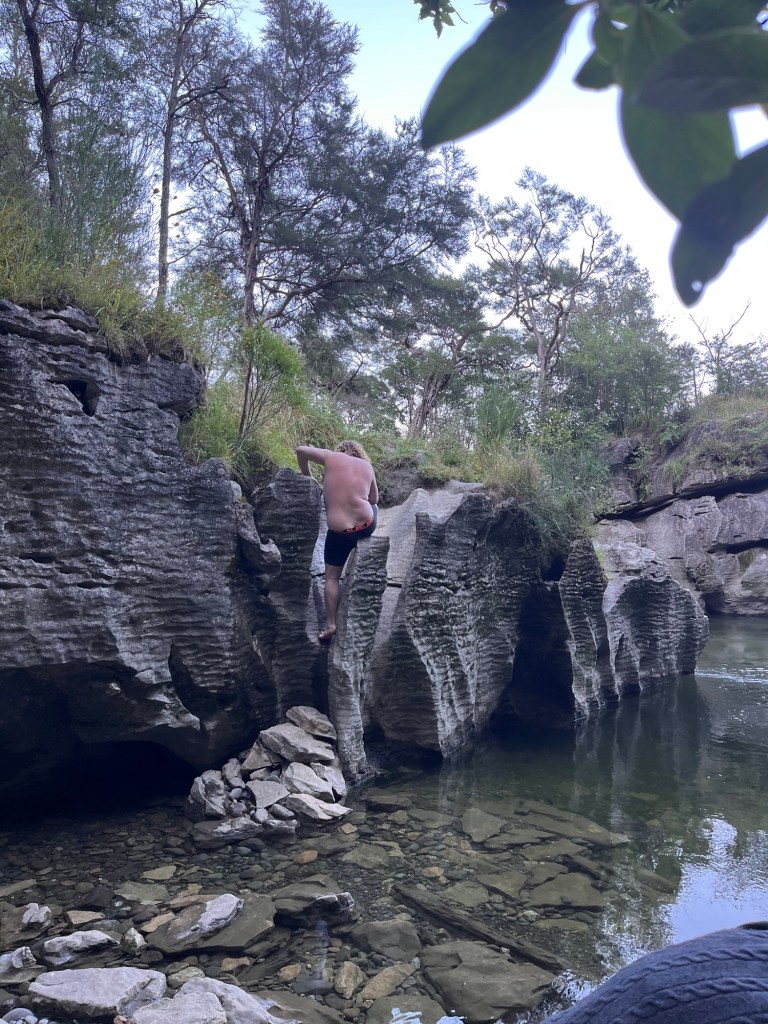 An early morning swim at Paines Ford. Known for being able to climbe the rocks around the river. We were there early enough to miss all of the rock climbers.