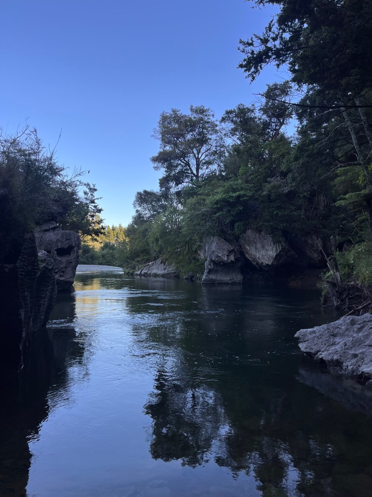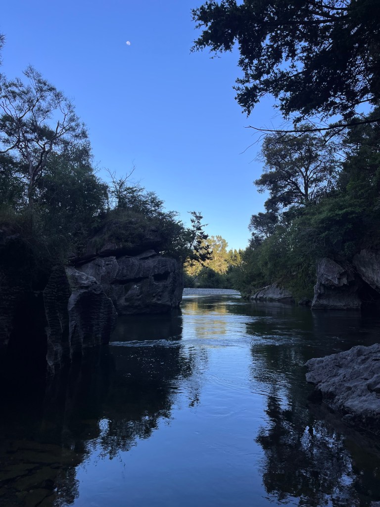 We drive out to Pelorus for the night. We go down to the river for a snorkel and a good swim. But first we sit in the river attempting to eat a full tub of ice cream. We fail.