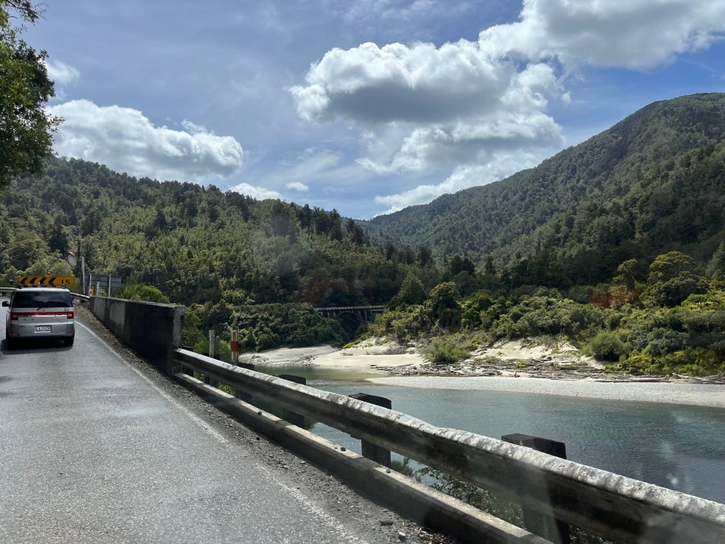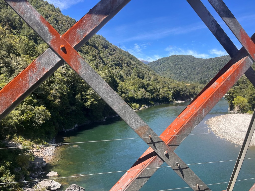 Rowan and Germie had their morning swim in the Wairau River. We head off after coffee and don’t make it very far, a proper flat tyre! Even though it is early 7.30am it takes hours to get the AA service out to help us. Rowan sacrificed putting a jack in the tool compartment in order to fit more fun stuff. Obviously this was a calculated risk and we are not all that bothered. We don’t get back in the road until 11am.