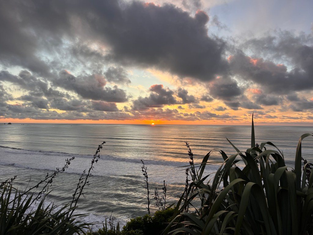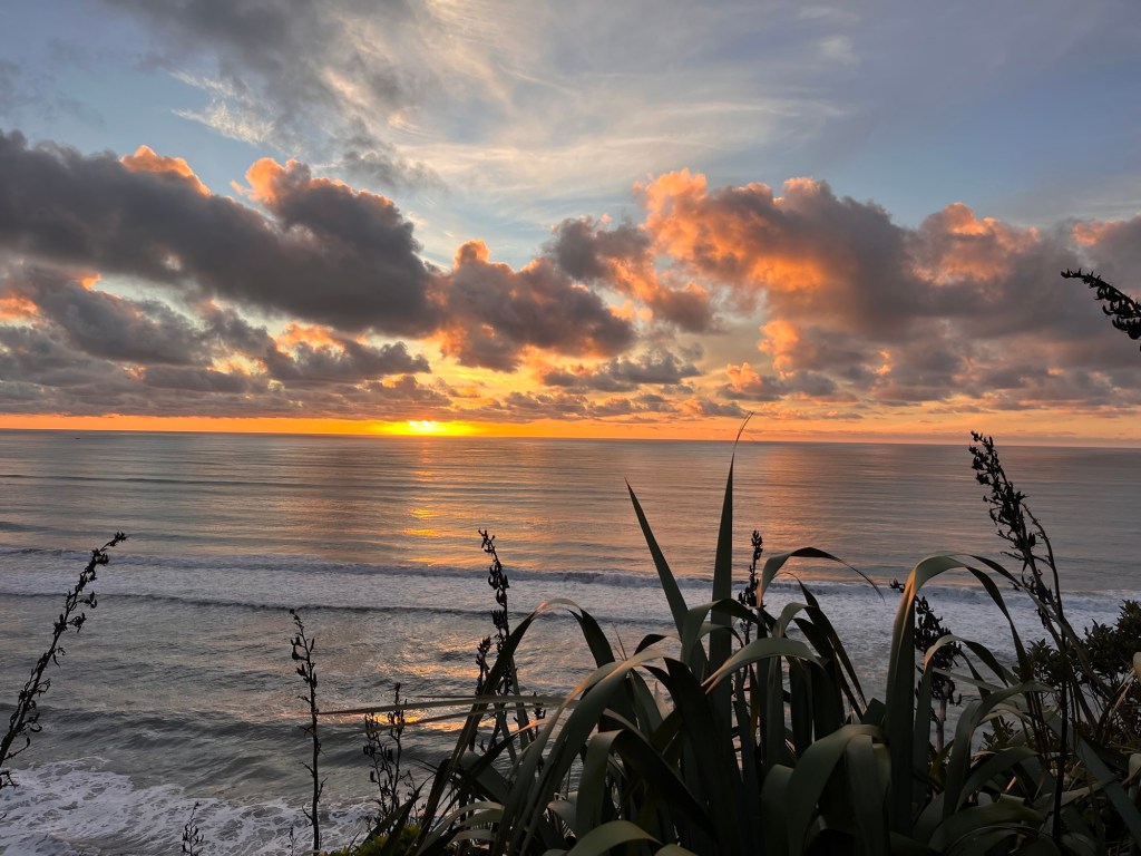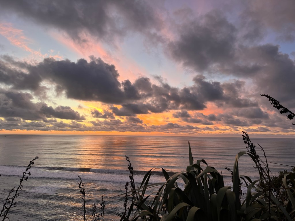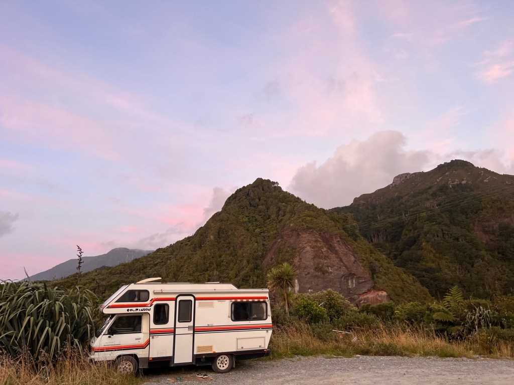 Parked up for night up on the cliff next to the roaring ocean. A beautiful West Coast sunset.