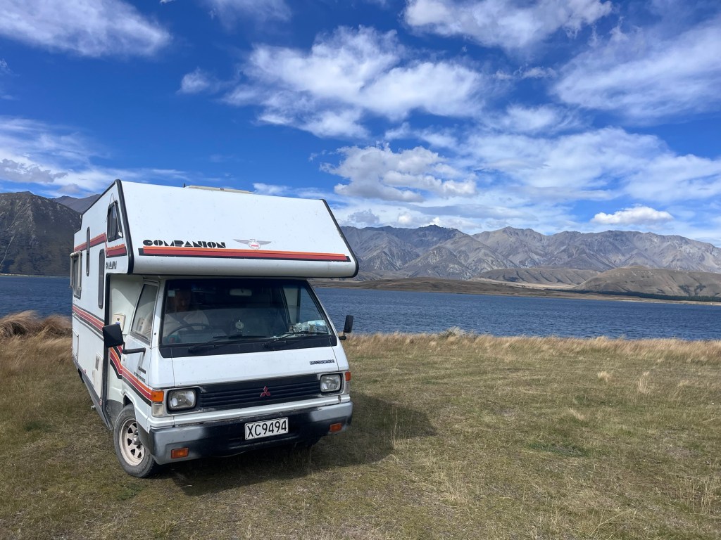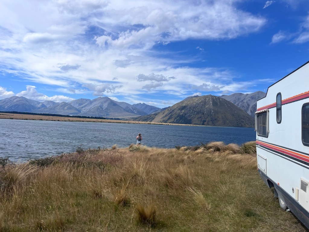 Today our plan is to stay somewhere out near Edras (Mt Sunday). First Rowan and I jump into Lake Clearwater, the water is really nice with the sun out. When we make it to the carpark at Edras there is a large tour bus, a lot of cars and you can see a few ants (people) on the mountain. Jenna has been here before so doesn’t want to go back up. We decide to drive back the way we came and head up the other valley.