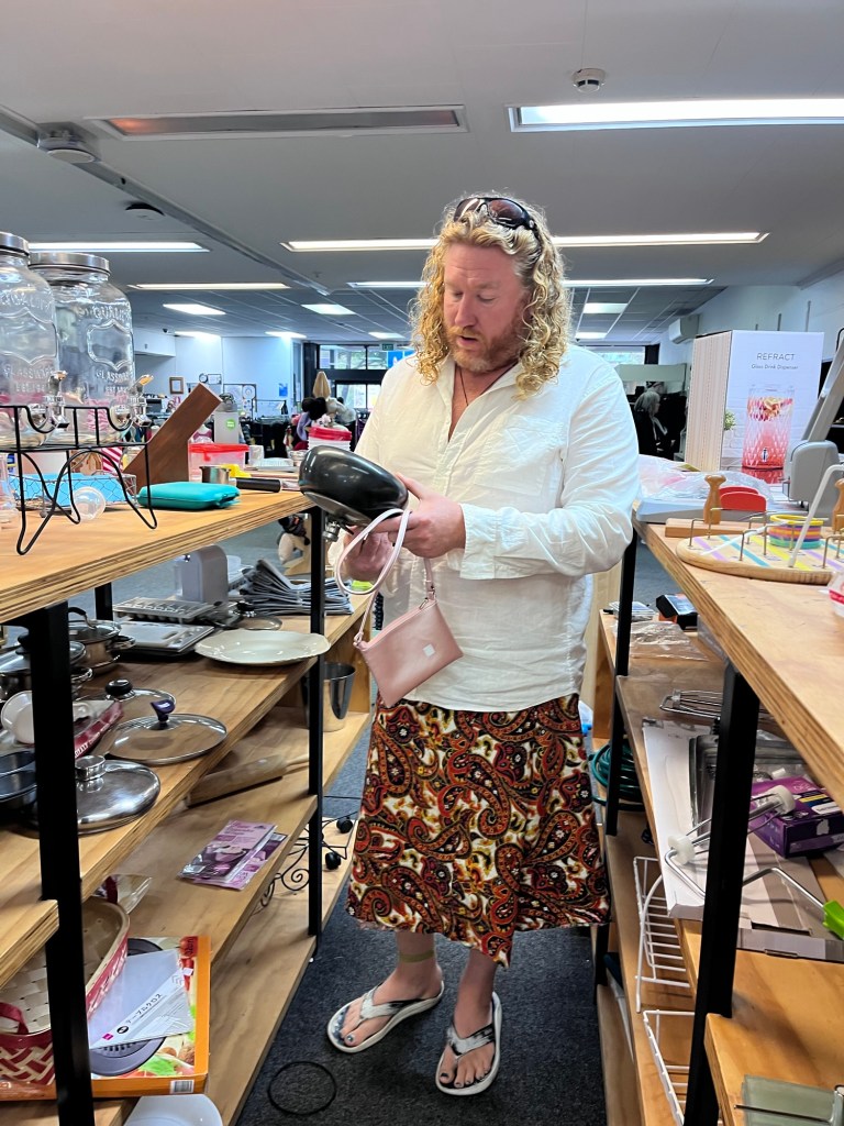 Next on Rowan’s list was an op shop challenge but before we started that we thought we better get one last Ferg. While we were eating we get the next phone call this time from Mitre10. We can’t deliver your kitchen the truck Hiab has broken. We push back and ask them to find a different solution. They kept putting it back on us, incredibly frustrated we decide we need to get back to pick up a bloody kitchen for tomorrow.