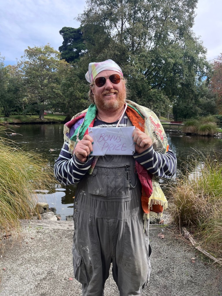 So what’s a girl to do! Well let’s finish this hunt once and for all. Rowan’s op shop challenge was to dress up his outfit. He did that and got his bonus prize. A poetry book. We also did the nature bingo in Ōamaru Gardens and he did a few side quests too like climb a tree.