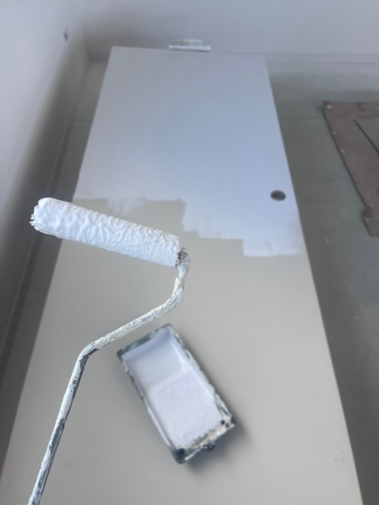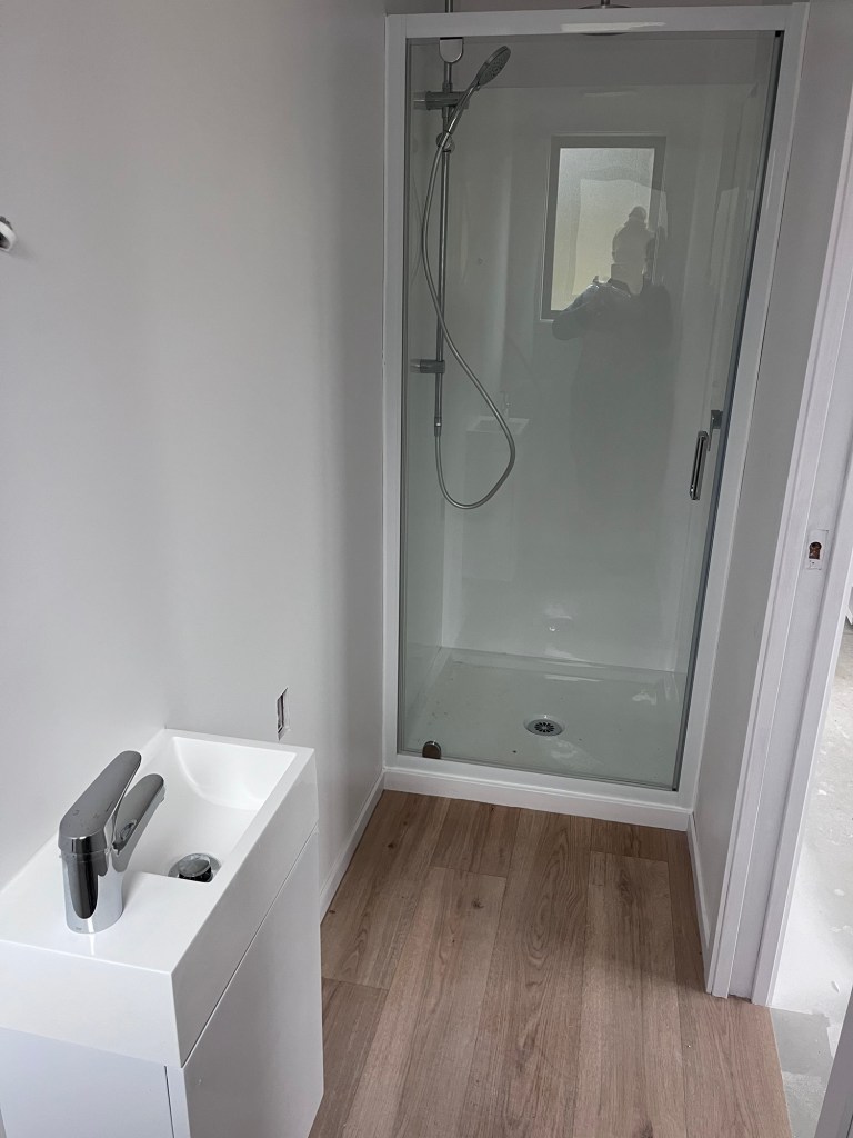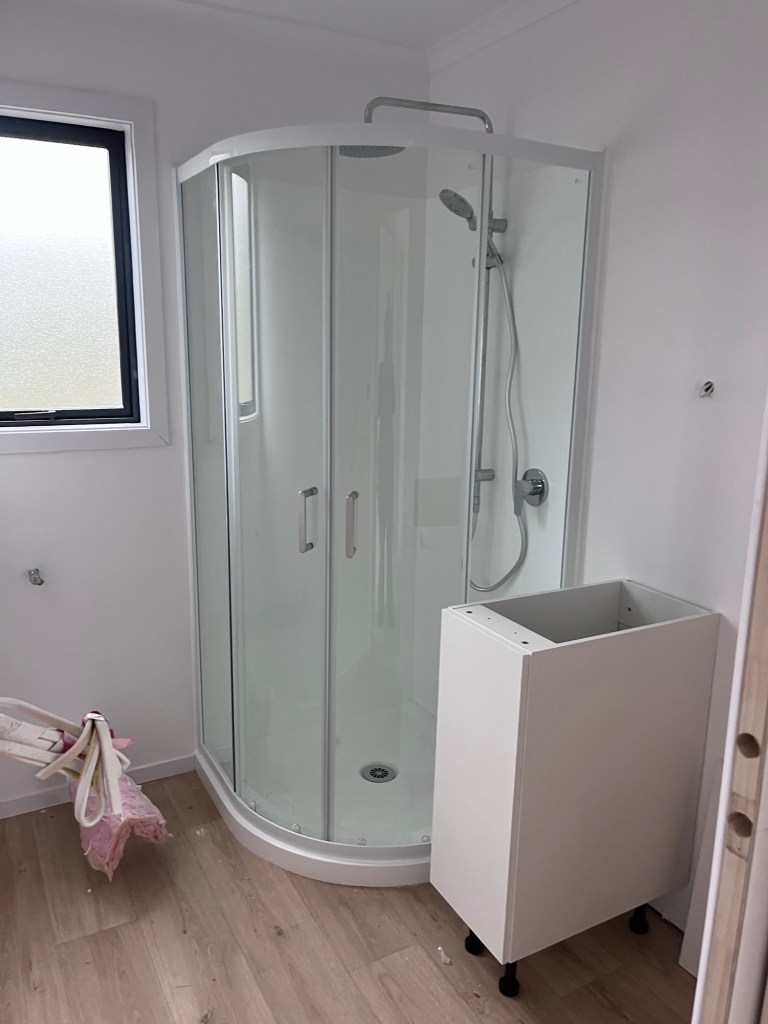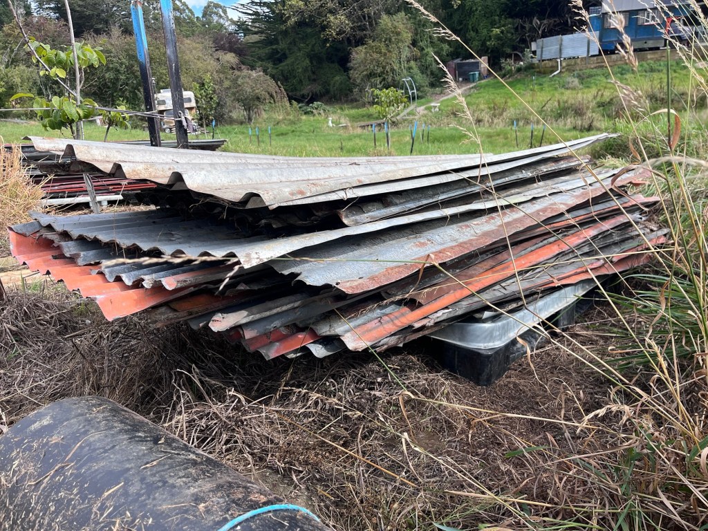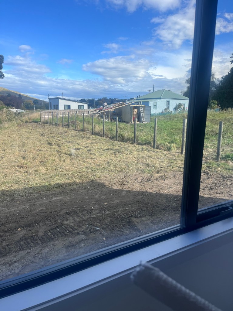 Plumbing day, Dave is here to make a good start on our plumbing. We have another day and a half of work to do. But this is all we will do for now as we do need to connect up. I painted the first coat into the trim and doors. Rowan pulled down the lean to at the container. We are taking this container to Herbert.