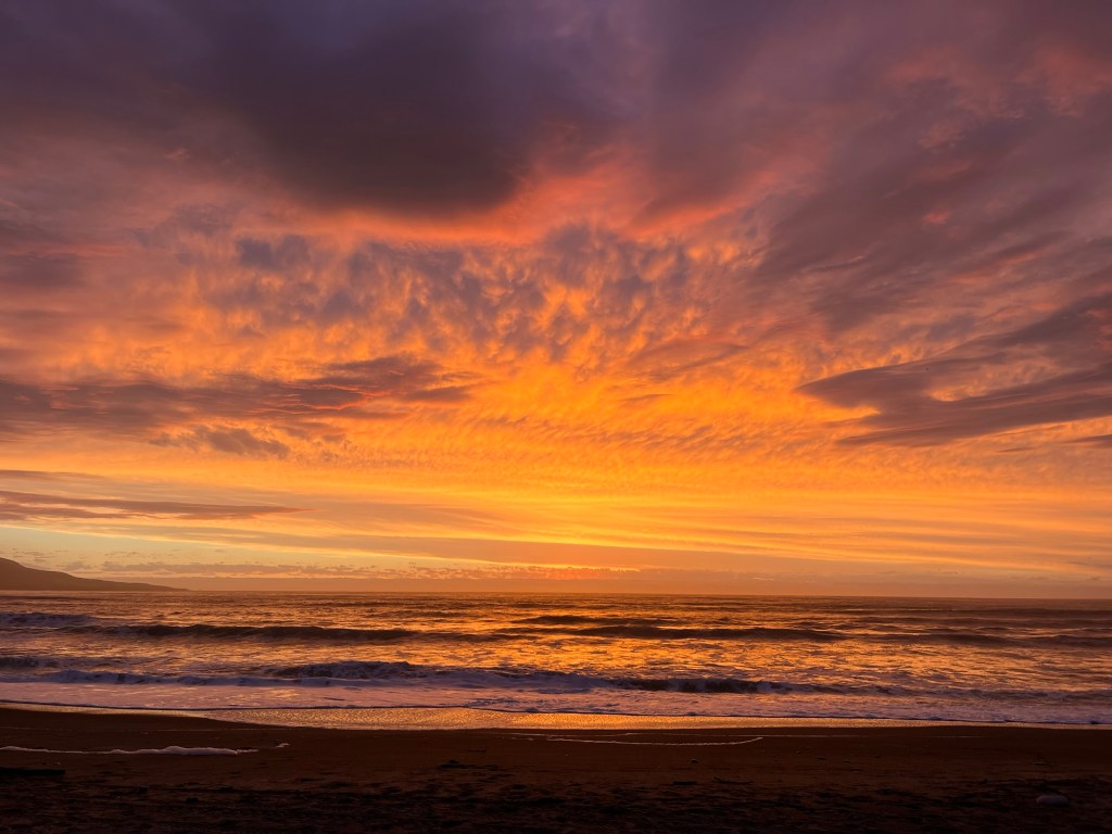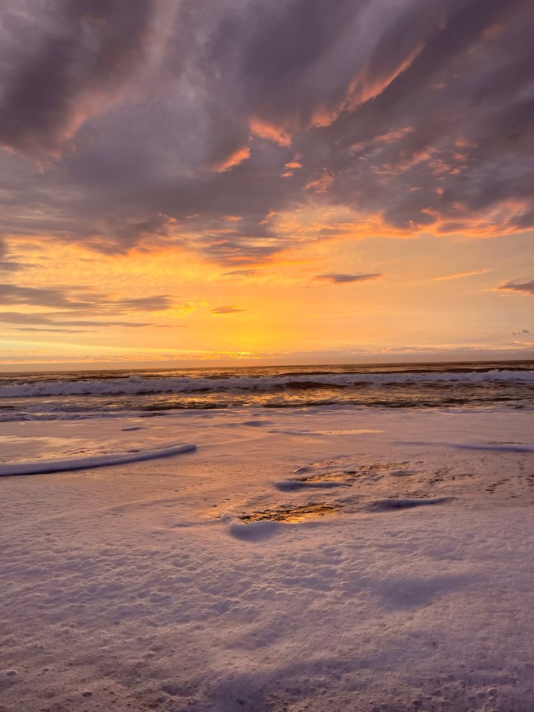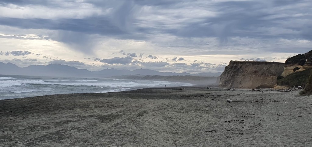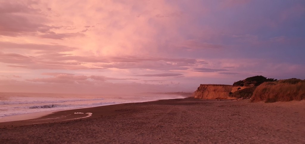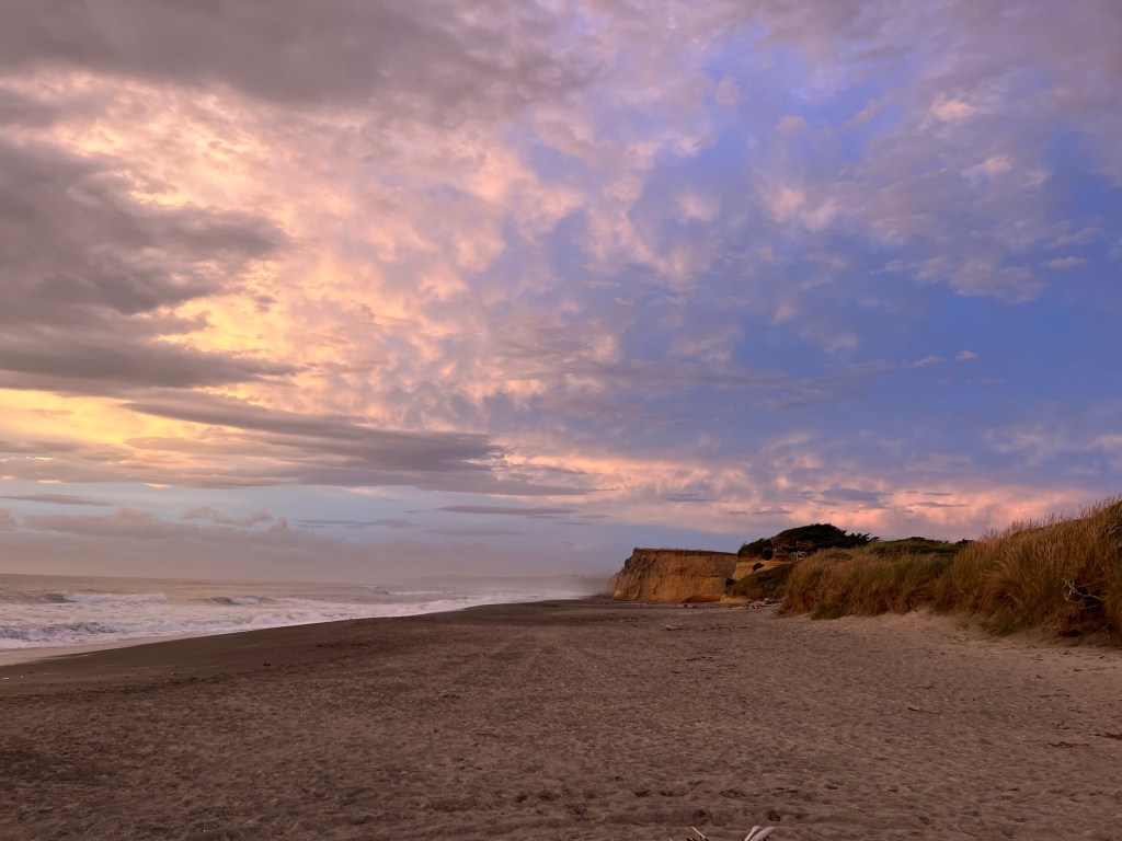 Germie and I went off on an adventure. We didn’t get to our destination but here at Farewell Spit we found an awesome Pilot Whale skull dug into the sand. We ended up spending an hour getting it out. We really wanted some teeth. A little bit sad about no teeth but it was still like digging for treasure. It still had some flubber attached so it was pretty smelly and we needed to swim it off.