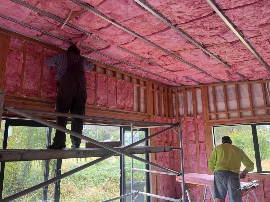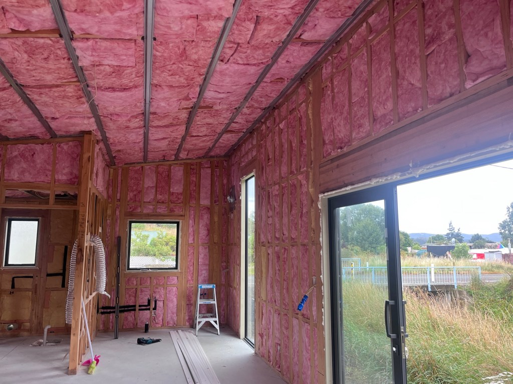 News this week, well we had the plumber and sparky come do their jobs while we were away. The insulation was delivered and Graham our builder came down to help us get it all in before the inspection. It was all done by 3.30pm, I think the three of us worked well and got the job done pretty fast. Even with masks and gloves on the fibreglass is not a fun. Rowan and I took a cold plunge when we got home to remove it all.