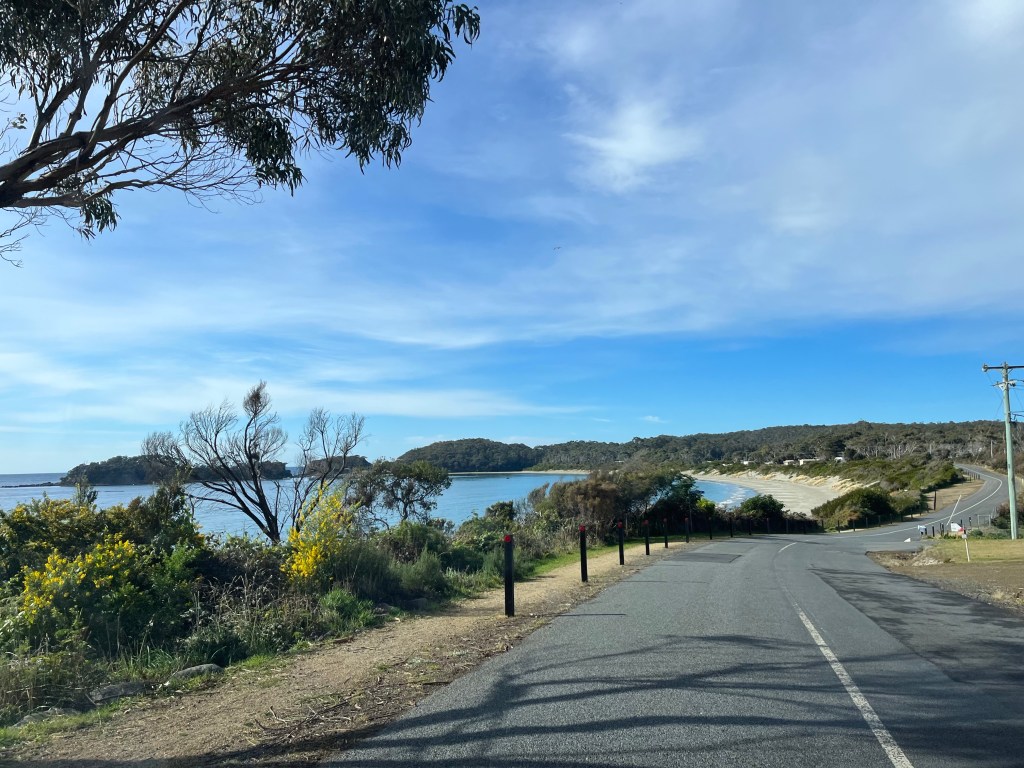 Not sure what we will do about the bike but we thought we will keep going. When we reached the car park for Coopers Beach we took a quick rest just before the driveway. We had some dickhead yell abuse at us because he said it was dangerous to slow right down and turn in. That it was illegal for us to stop where we were. Even though legally you can park right here and I am sure people do in the busy season. Anyway I told him to read the road rules and he called me an idiot. Great now I have to worry about that wanker running me off the road.